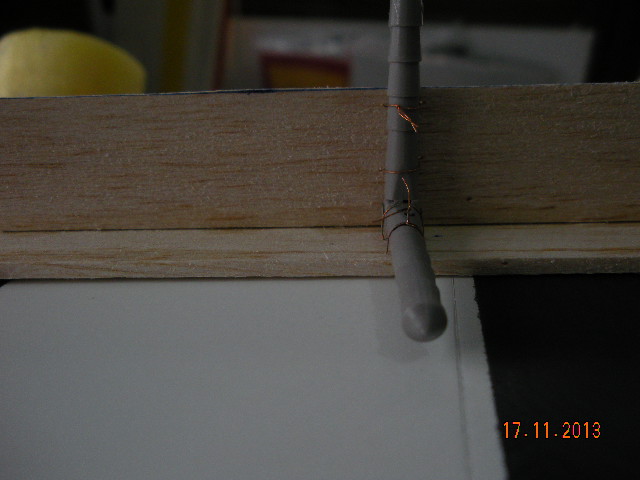 Gracias Mafer pero me quedan algunas cosillas importantes, como rematar la instalación del motor que es algo complicada. He terminado de simular la antena, para que no se rompa en el transporte es de quita y pon, con un conector de batería de 4 mm al que he soldado un tubo de cobre que tiene una ranura para colocar el contrachapado de 2 mm y terminado con pasta epoxy.
