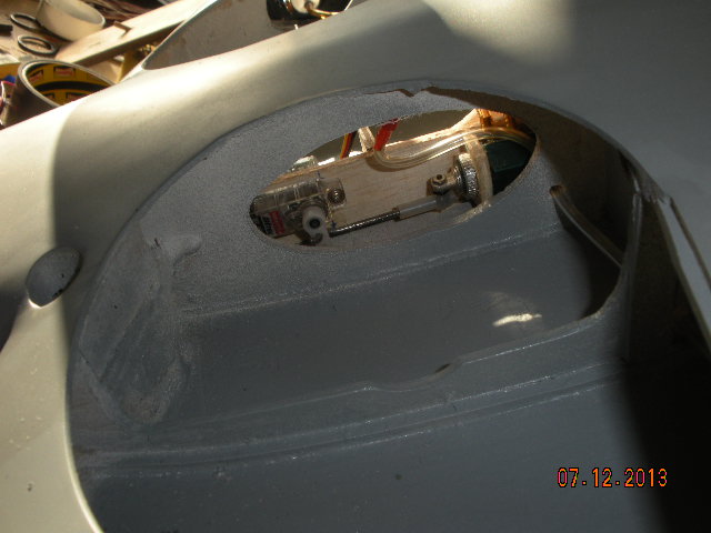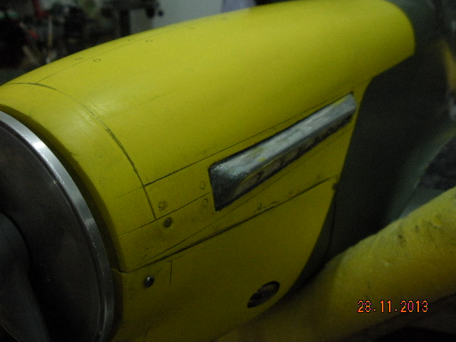 Resulta que tiene una pequeña entrada de admisión bajo el ala, justo en el centro y que he realizado con una pajita de refresco para hacer el molde y ha dado buen resultado. Me falta la foto de resultado final, ya la subiré.