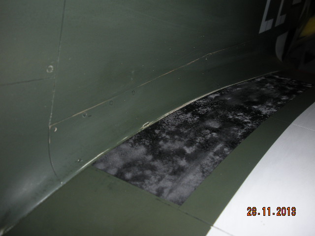 Ahora está un poco mas viejito y sucio. He puesto la zona antideslizante de las alas para subir a la cabina, está hecho con pintura Humbrol negro mate puesta con pincel y estando fresca se añade microburbujas, el resultado parece bastante real.
