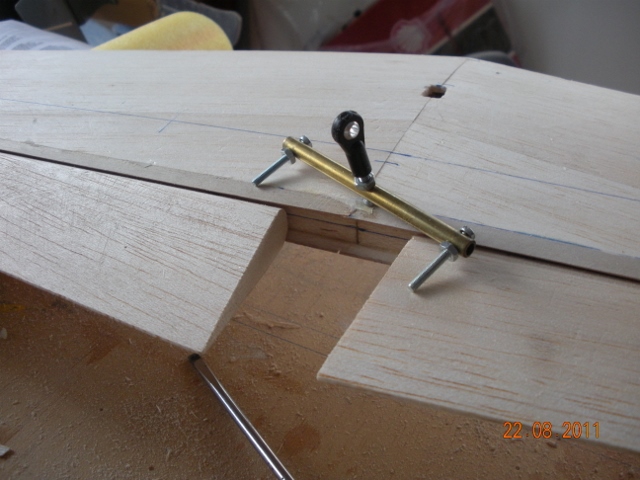 Dado que se me ha parado un poco el tema por culpa del clima y algunos problemas eléctricos que me obligan ha esperar un paquetito con algunos accesorios. Mirando fotos de la construcción hay un tema que quiero comentar, son los cuernos en "U" para unir el timón de profundidad que se siguen haciendo en acero de 2,5 o 3 mm, cuando en aviación real se utilizan tubos por su mejores cualidades antitorsión, con lo cual se evitan posibles flutters. Yo vengo usando tubos de latón, aluminio o acero con muy buenos resultados y me parecen más fáciles de hacer sin problemas de soldaduras. Dejo unas fotos de los que he puesto en el Mustang, tanto en flaps como en profundidad.
