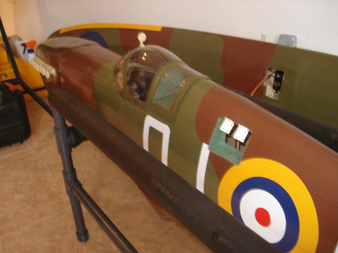 Saludos:Ese Spit es el que se anuncia en la revista y en el que pone que las piezas son intercambiables con el de Kyosho?Creo que asi es.El fuselaje es de madera no?Animo que te esta quedando muy bien.Tally Ho!