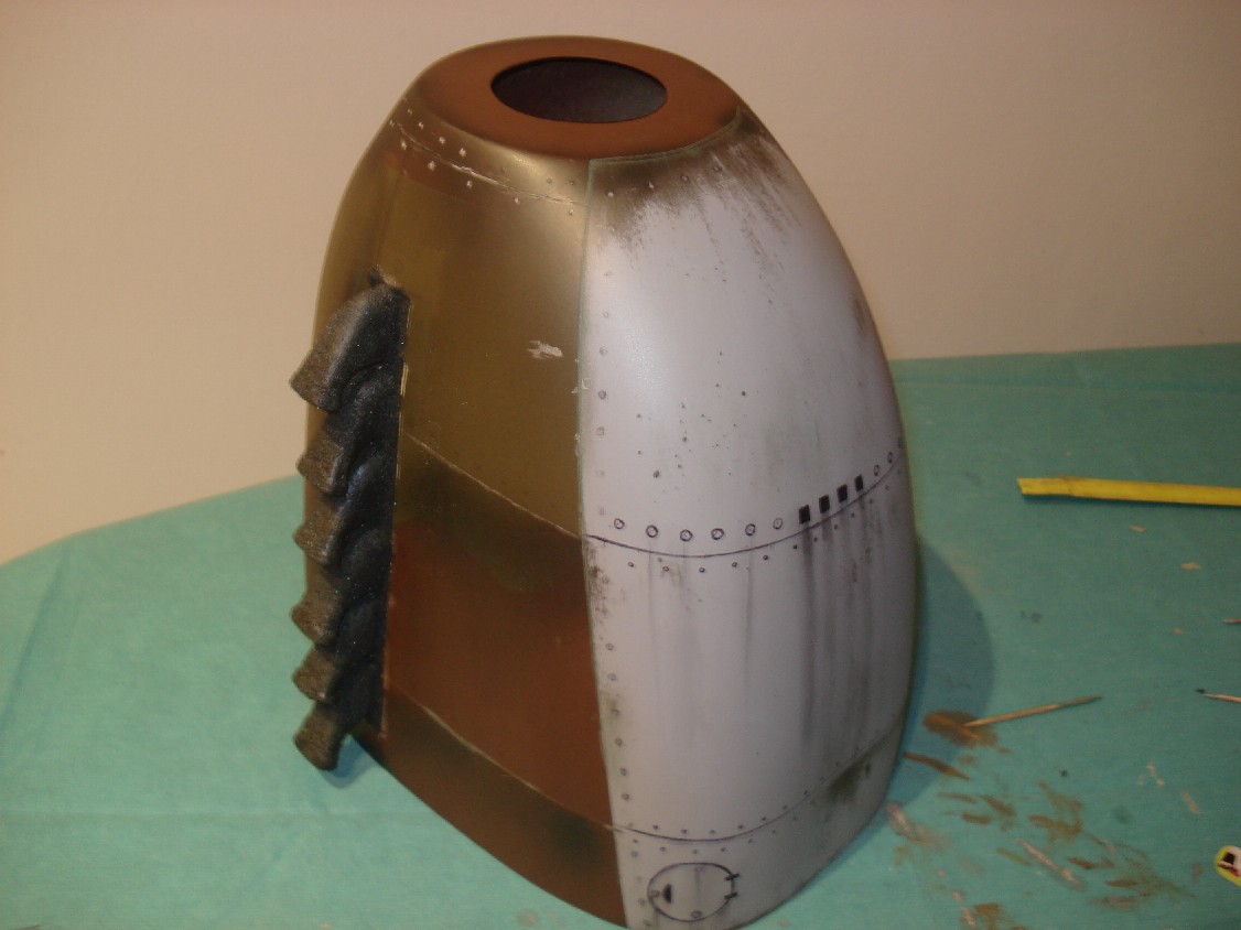 Hola,os dejo unas fotos del avion listo en cuanto a decoracion se refiere a falta de dos capas de barniz satinado.Despues de marcar a lapiz paneles y remaches,desconcharlo un poco con pintura aluminio,se repasan las juntas de los paneles con aerografo,y con un trapo con aguarras se diluye un poco aqui,y alla.y este es el resultado.