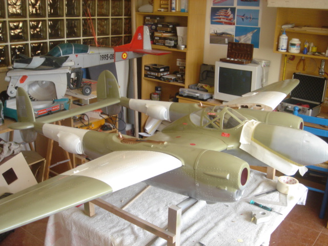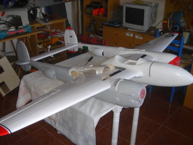 Os presento mi nuevo proyecto, un P-38 de air loisirs, no es mi primer bimotor pero tiene su diferencia, hace unos años construí una cessna skimaster que los motores los tiene en tandem. Lo voy a montar con la siguiente configuración, dos motores saito 4t. de 80, tren retráctil neumático Eurokit, encendido automático de bujias y giróscopo para el timón en caso de perdida de un motor.