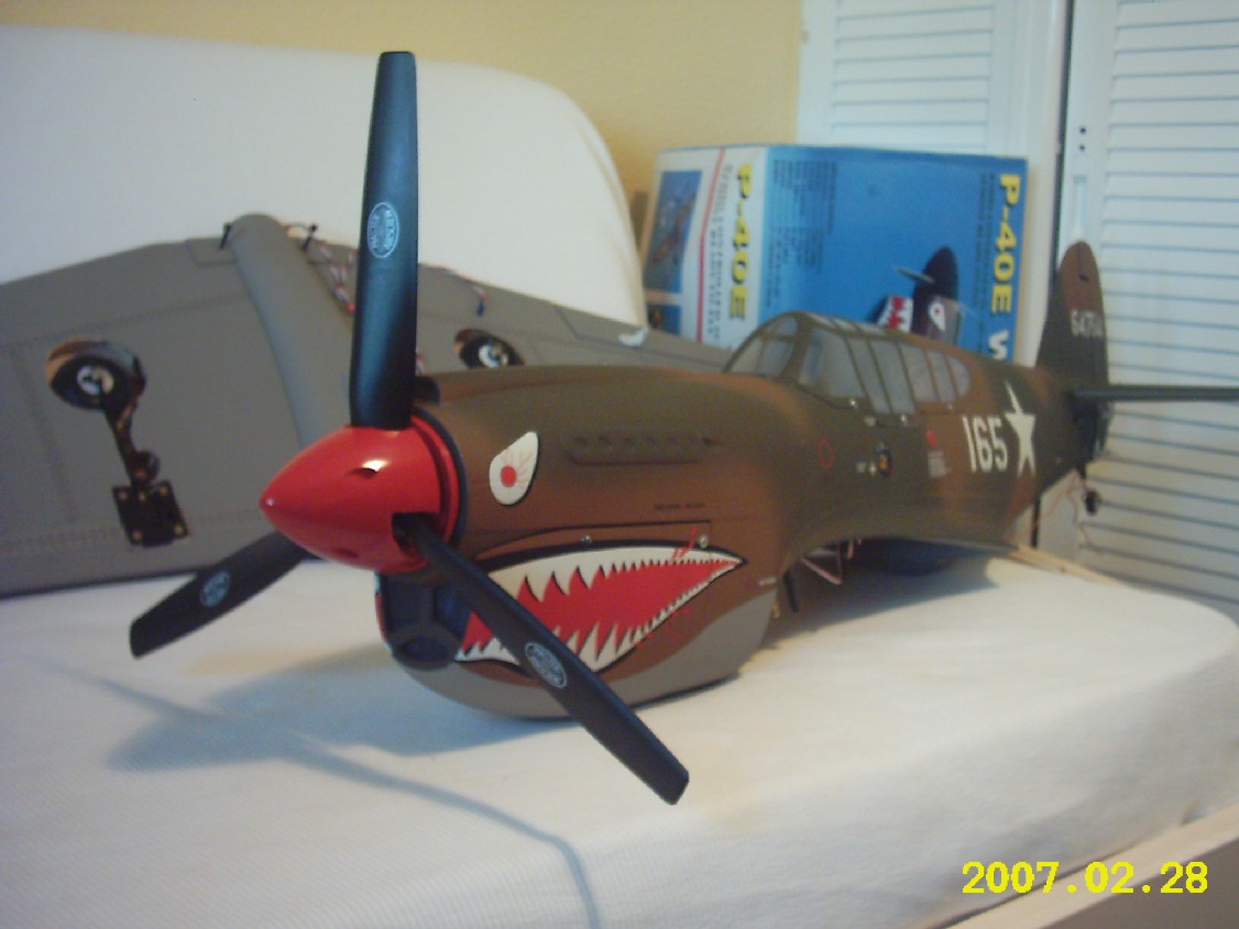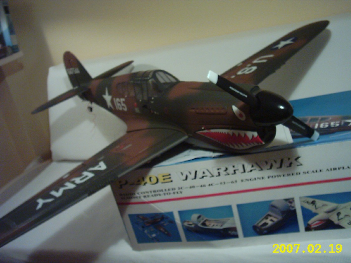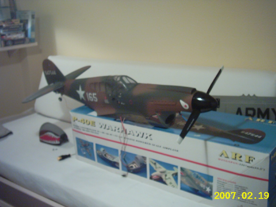 Después de buscar un modelo de avion de la SGM que no fuese de motor radial (quería un modelo con buen aspecto aerodinámico) y que no abundase demasiado en los campos de vuelo (descartados, p51, p47, Me109, spit, etc) me compré el p40 de CMP ditribuido por Jamara en España.
