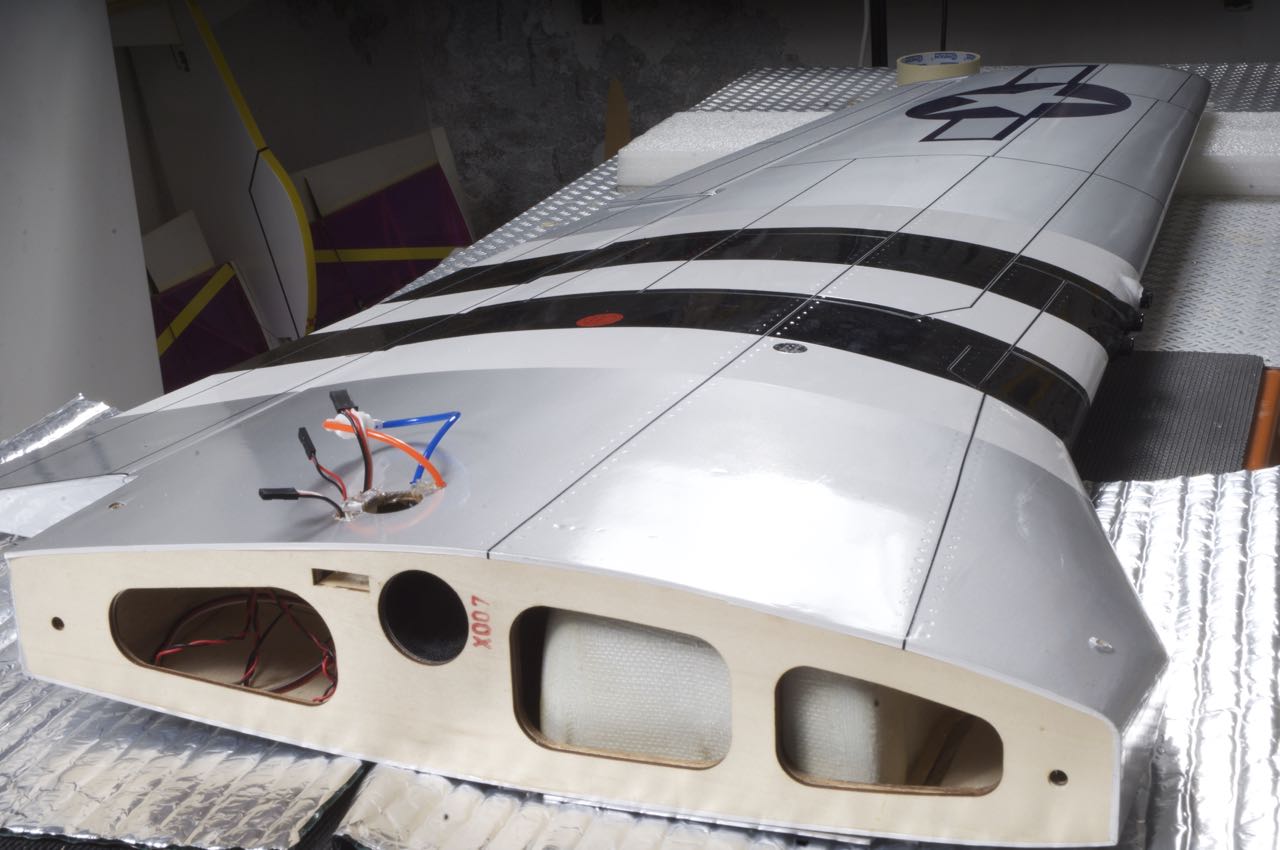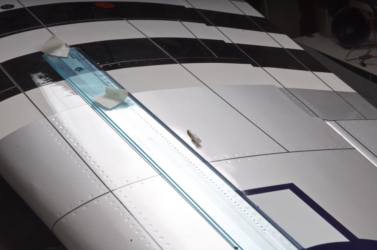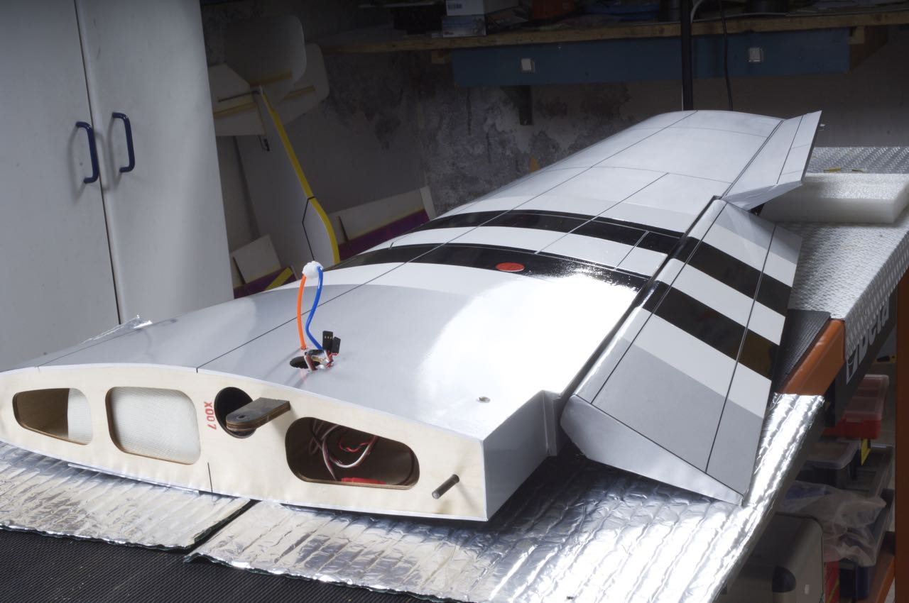 - A pesar de adelantar el centro de gravedad al 25% del borde de ataque, necesita estar un poco mas adelantado para que el trimado sea neutro, lo he puesto 300 grs más, espero que con esto quede perfecto.