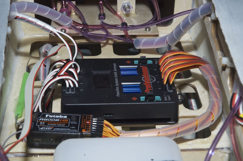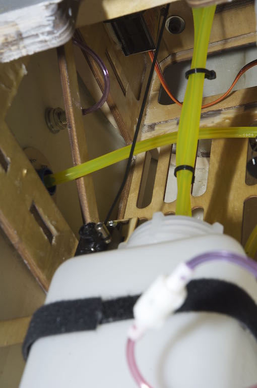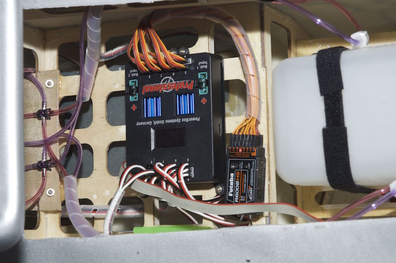 Un poco del interior, deposito de 1.000 c.c. servos de acelerador y de aire del motor, toma de combustible, toma de aire para el tren de aterrizaje y por último el interruptor doble de la centralita.