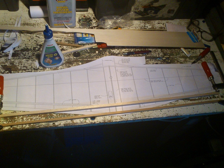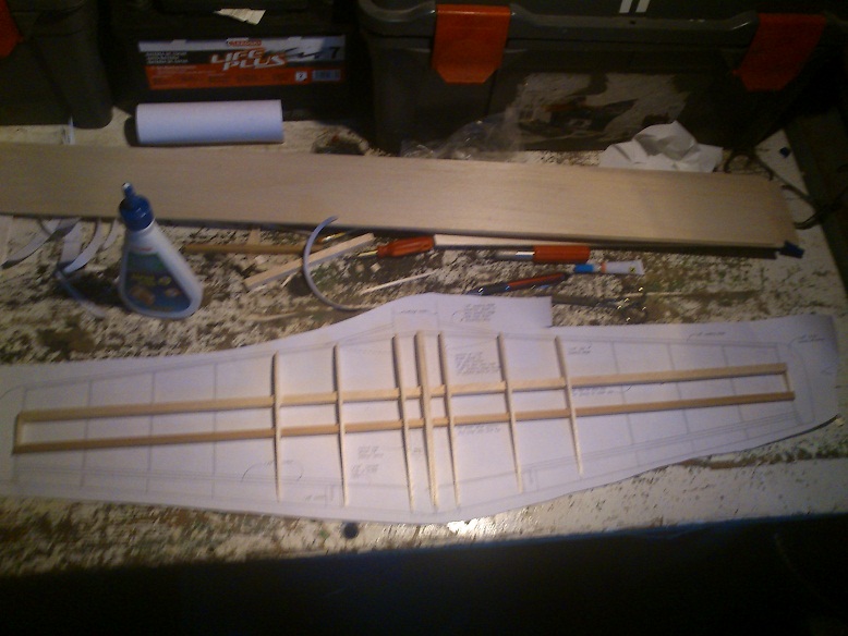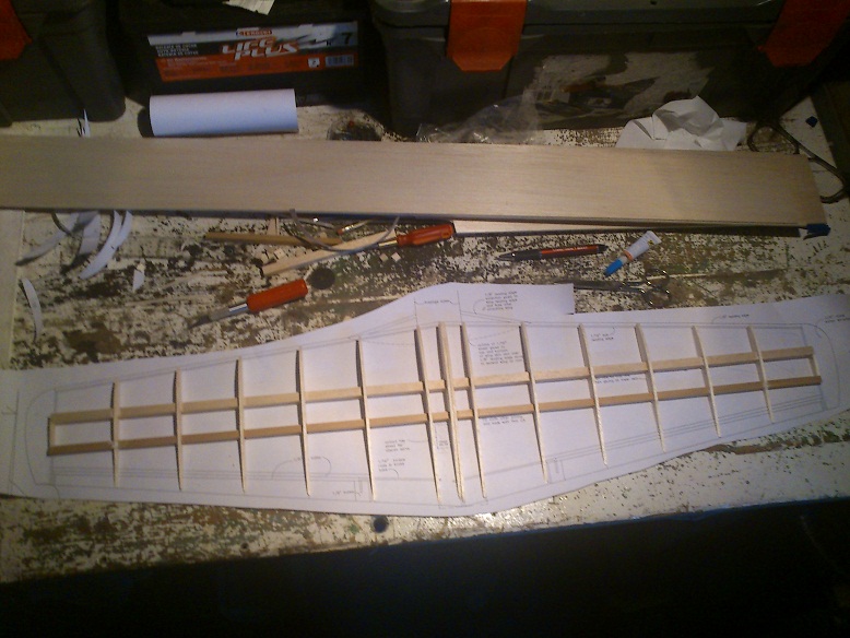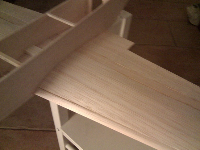 pues lo de los alerones lo pensé, y como sabia que probablemente me "comeria" algun milimitro al cortarlo, pues decidi primero pegar las costillas y despues sobre plano relizar el corte de las costillas para el aleron.