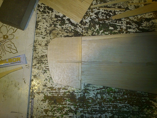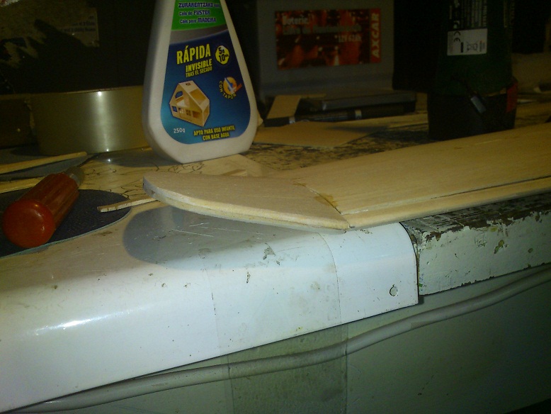 Es casi la 1 PM y hoy he avanzado un montón. Ya tengo el ala completamente enchapada, con las puntas puestas y enchapadas tambien.