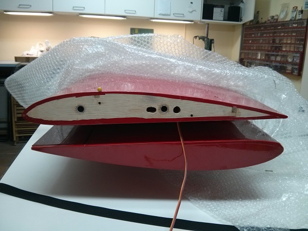 Os pongo fotos del avion, i de como estava la profundidad para que el avion volara si tendencia a elevar-se, con menos de medio gas, si le pongo mas motor si que se va hacia arriba; i fotos del perfil alar, el centro de grabedad esta justo donde hay la punta del lapiz amarillo en la foto del perfil.
