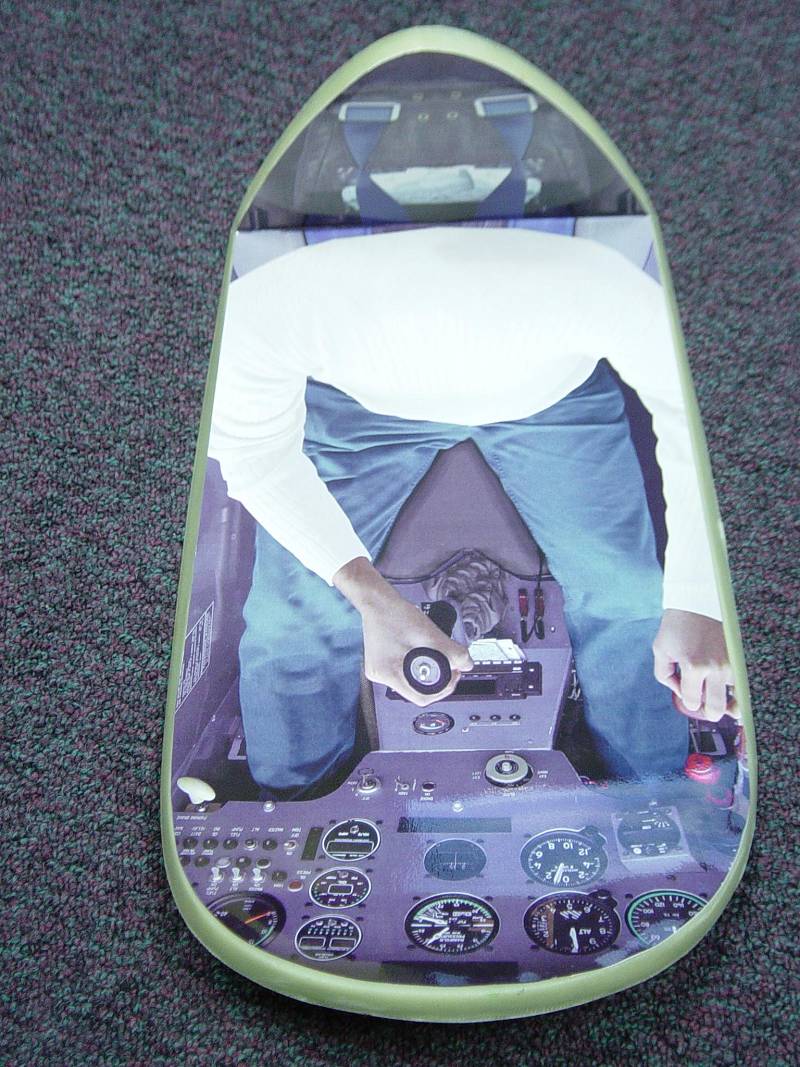 Para un extra que tambien tengo con cabina virtual me esmere un poco mas, recorte los instrumentos que queria, los pege en una madera balsa de 2mm, por delante de los instrumentos le pege un acetato trasnparente y por arriba de eso le pege una lamina de aluminio de 1mm que previamente le prepare los ahujeros para que se vieran los instrumentos y listo, de esa no tengo fotos todavia pero cuando pueda pedir una camara le saco una foto y te la mando.