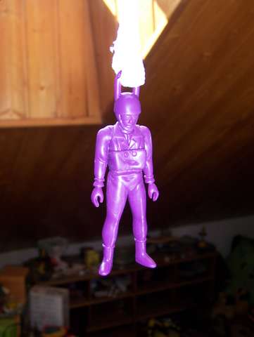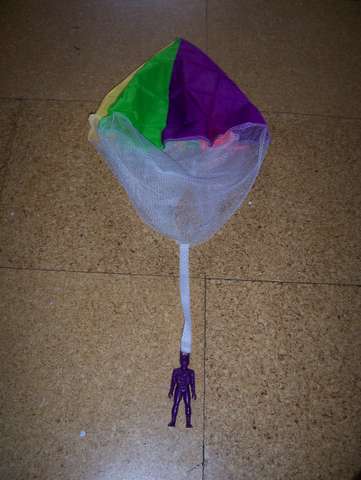 Segunda prueba en el campo.... lo lanzo y se suelta peroooooo como doble demasiado el paraca callo como una piedra. lo vuelvo a doblar pero menos otra vez a la carga...... lo lanzo sube sube y cuando veo que esta a una altura optima le doy al boton y cae..... con una magestuosa bajada y la curiosidad de los presente FUNCIONA