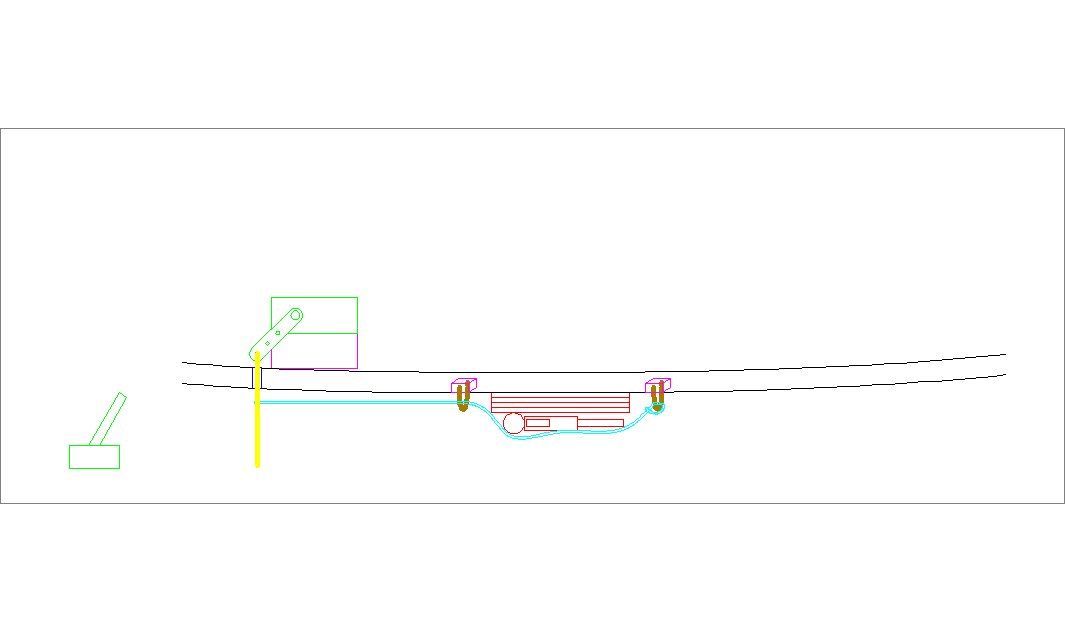 ·En amarillo la varilla de transmision, quizas se le podria poner una bolita en el extremo para prevenir desenganches accidentales, pero siempre que el sistema pudiera actuar.