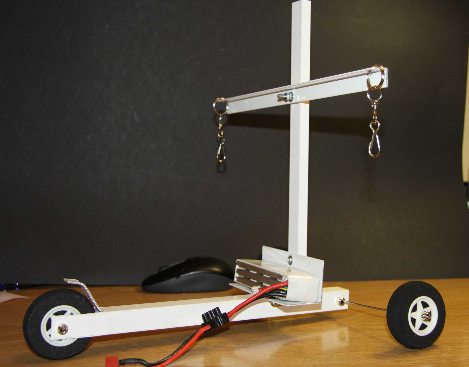 Si no recuerdo mal, el costo del aluminio no superó los 10 euros y el peso total (incluida batería de 2.500 mah, servo de 12 kg con piñones metálicos, variador de 25 amp y receptor) es de 748 gramos.