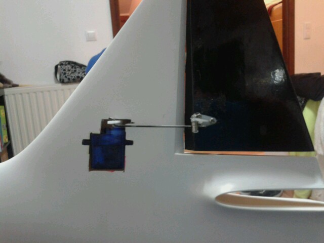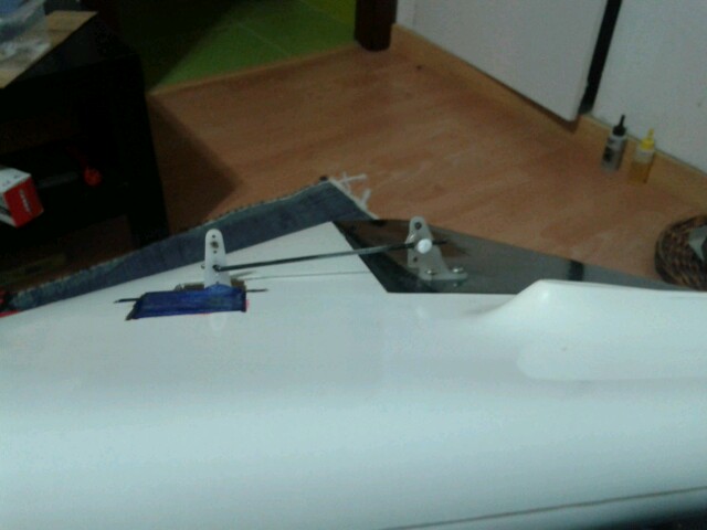 Crei que llevaba menos trabajo.suerte que tengo una dremel jejejeje si no me muero lijando jejejeje. Os pongo una foto de mi solucion al servo de direccion. Otro pequeño fallo en el diseño. Un avion para correr y quieren que pongamos el servo fuera del fuse jajajaja.