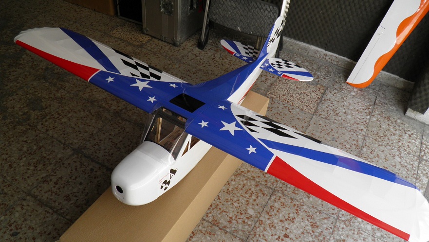 En cuanto ví este modelo no me pude resistir y lo pedí. En principio tengo pensado convertirlo a glow con un O.S.40 4T. Es para un motor serie 30 y con un peso en vuelo de unos 2 k. Ya veremos en cuanto se queda.