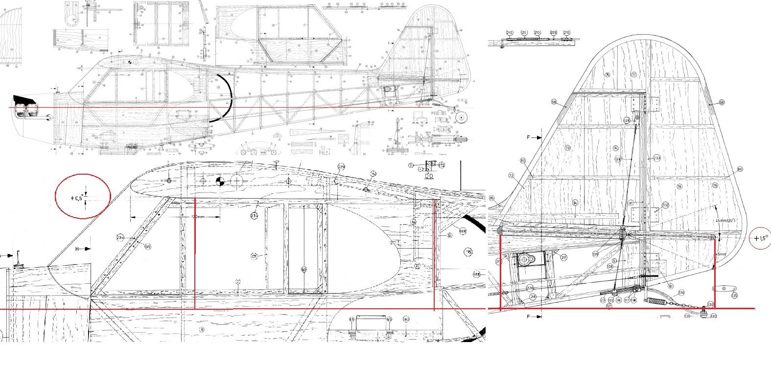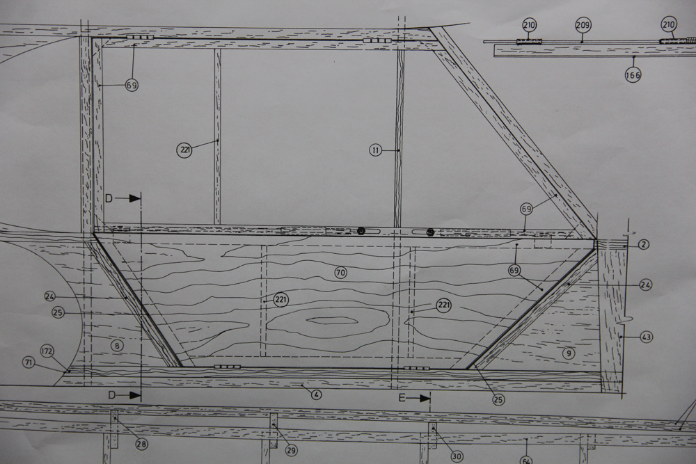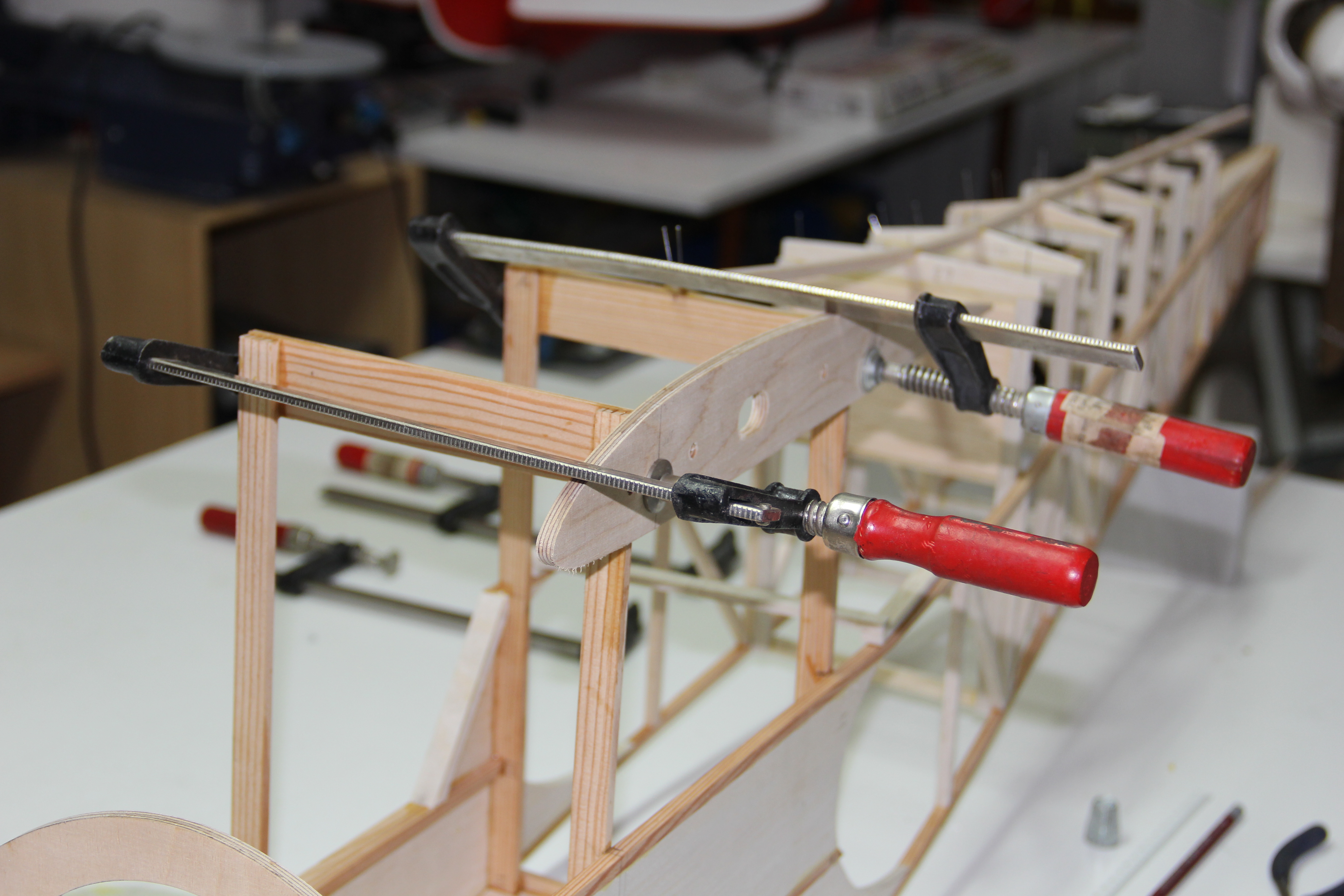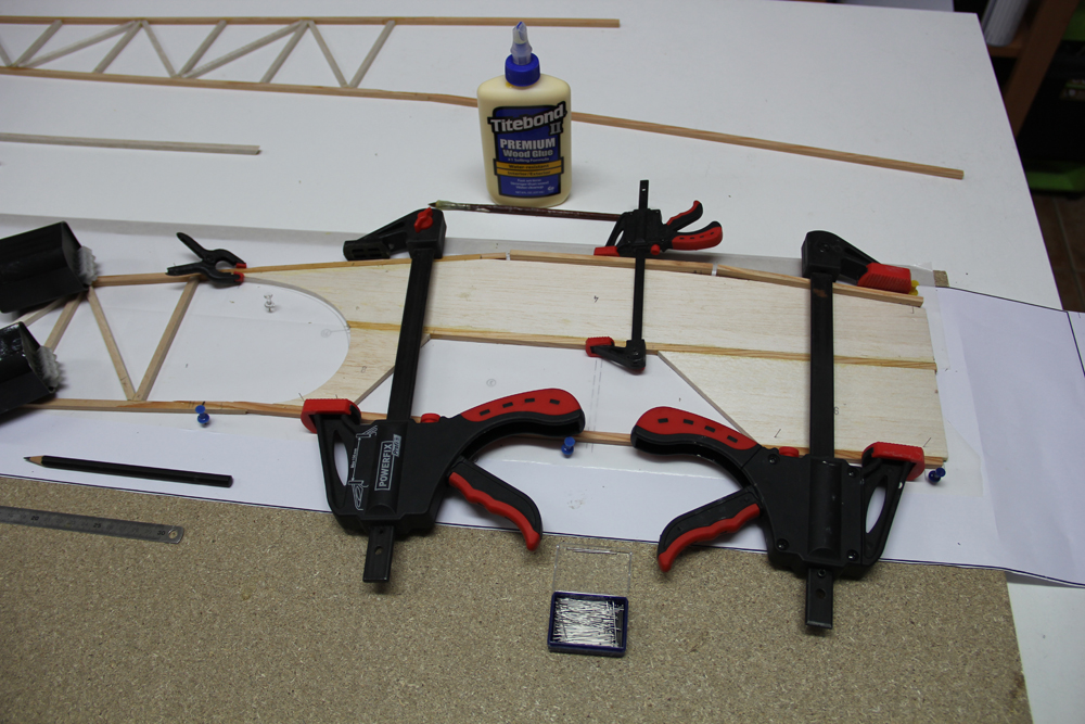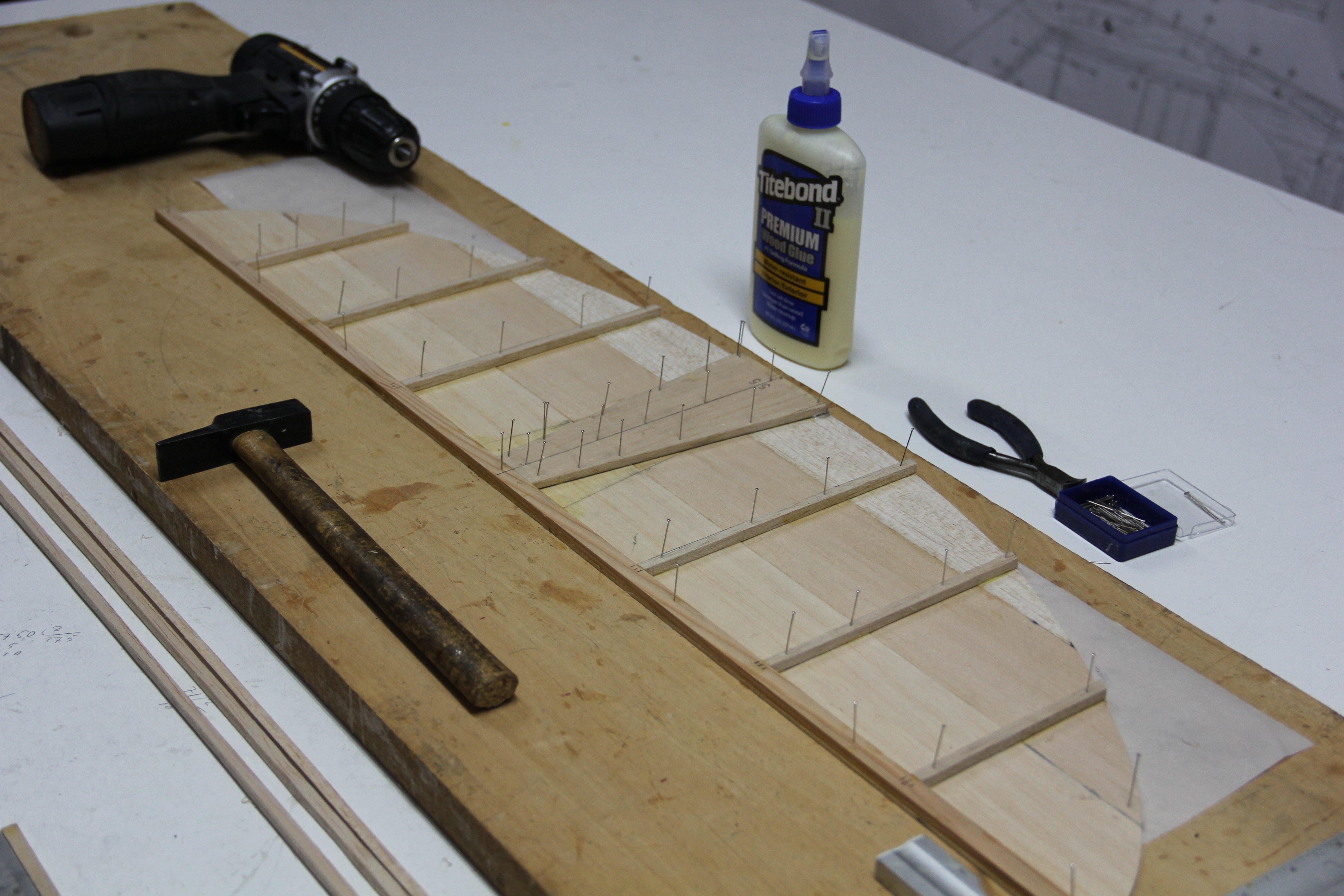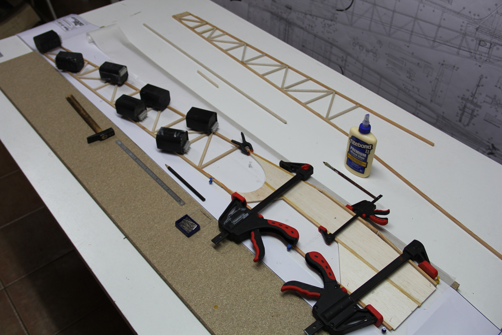 Madera de pino para refuerzos del tren principal y sujección tirantes ala. Colocación