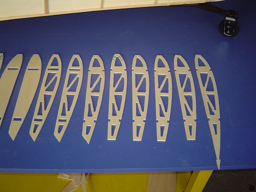 pero porlo menos me he cortado todas las costillas,en el plano van de balsa pero he creido mejor de contrachapado de chopo de 3m/m