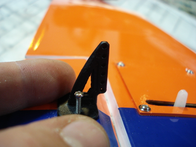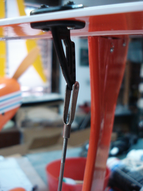 Con este sistema se transmite el movimiento del alerón inferior (que es donde está el servo) al alerón superior. Es un poco antiestético, pero sumamente funcional. Seria más bonito colocar un servo por alerón pero daria algo mas de tabajo, y estoy de un vago que.. ...