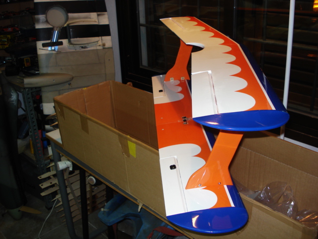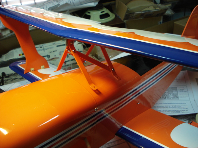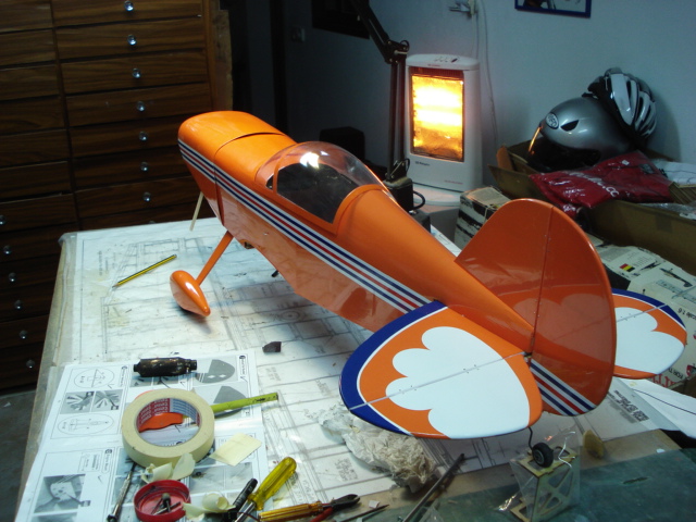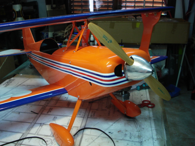 Bueno, pues lo dicho, otra tarde más y el avión se ha terminado. Ahora solo queda comprobar recorridos de mandos, comprar combustible y cargar baterias. Si todo va bien, el sabado habrá estreno. Le sacaré unas fotillos con luz día y las subiré para explicar que tal ha ido el vuelo inaugural, después de más de 25 años en esto no está mal estrenar mi primera Pitts, aunque sea para un 8,5 cc!!. Saludos cordiales.