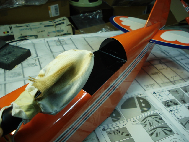 El modelo aguanto bastante bien el morrazo, pero la verdad, no tenia muchas ganas de repararlo y se lo regalé en ese mismo momento a mi amigo Enrique, compañero de club. En una semana lo tuvo magnificamente reparado y en estado de vuelo. El le ha montado un 46 2t y el avión se comporta de una forma totalmente distinta, en resumen, es mucho más fácil de volar, con el 46 tiene motor de sobra para cualquier figura clásica y en los aterrizajes es flotón como un entrenador. Yo mismo lo pude probar con esta nueva configuración y volví a quedarme enamorado, así que más pronto o más tarde me volveré a hacer con otra.
