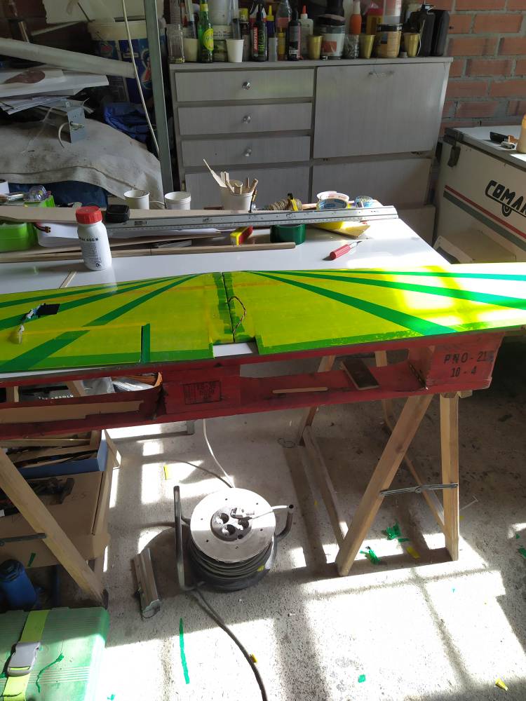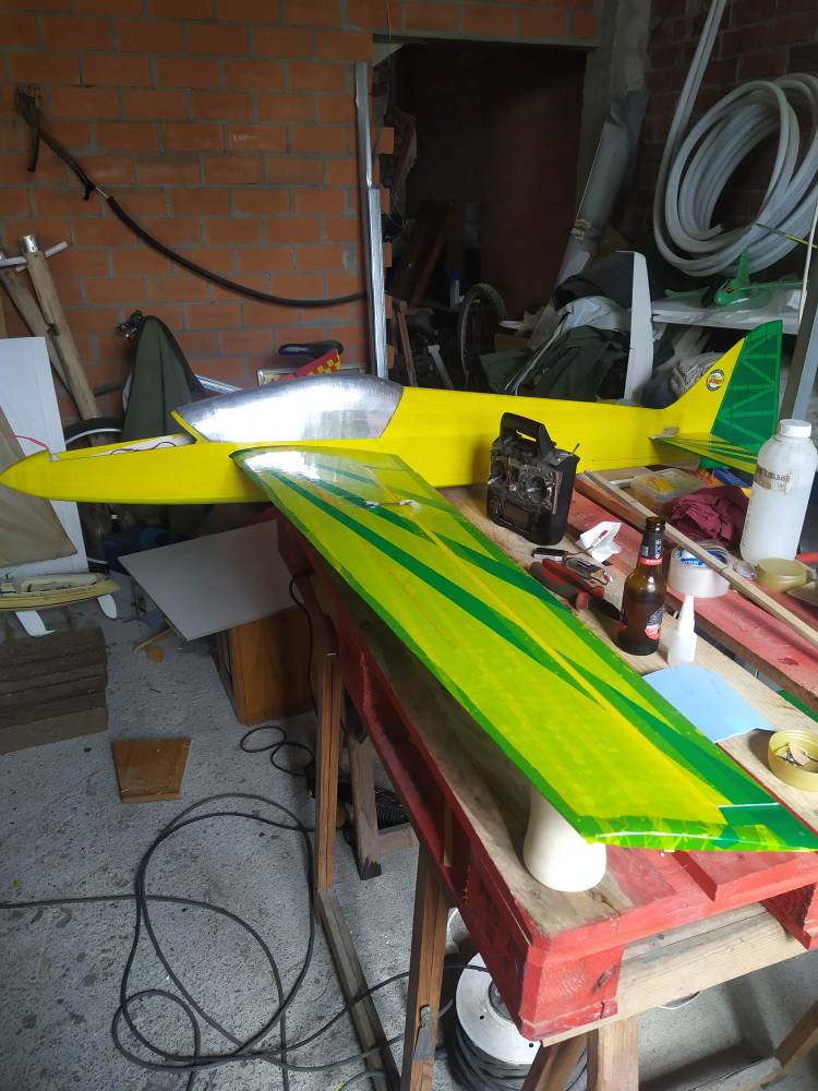 Aun no a volado. pero creo que a salido un poco obeso. En el plano pone como peso 2'5kg, el bicho me a salido en 2'9kg. Volará?. Más viento?. O empiezo a aligerar? . No me lo explico esta tal cual los planos.