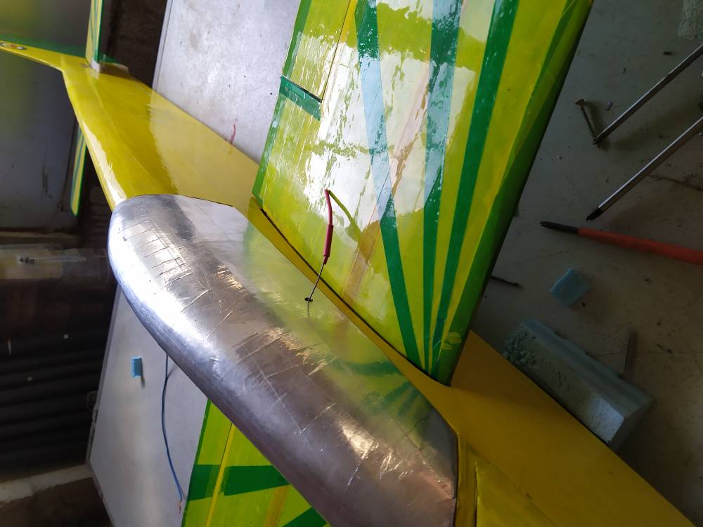 Los servos son tower hoby mg996r. En las alas ya tenía instalado el canal con unas pajitas de refresco. El alerón se mueve en consonancia con la cola. Tendré que poner algo en la emisora par en principio tener menos mando. (No se como se llama si dual rait o exponencial)