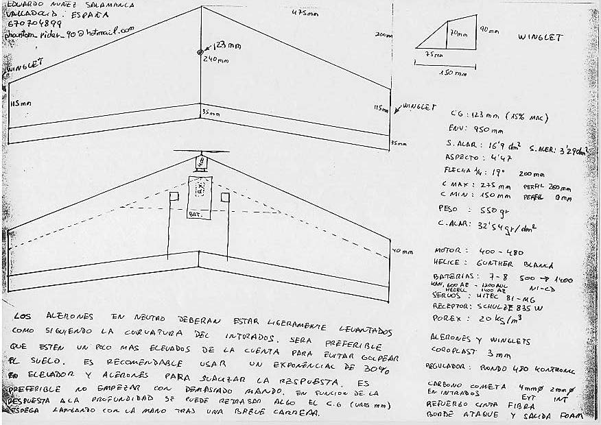 Hola, tengo la revista donde aparecía el Ciclón, un ala volante con flecha invertida diseño de Luis Cerezo, uno de los grandes aeromodelistas que ha dado este país. En cuanto pueda lo escaneo y lo dejo aquí mismo en el hilo. un saludo