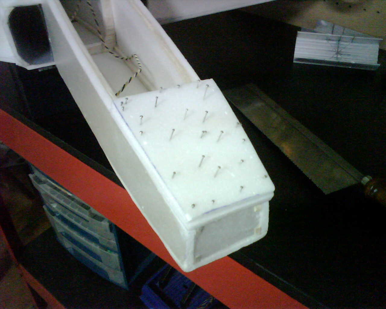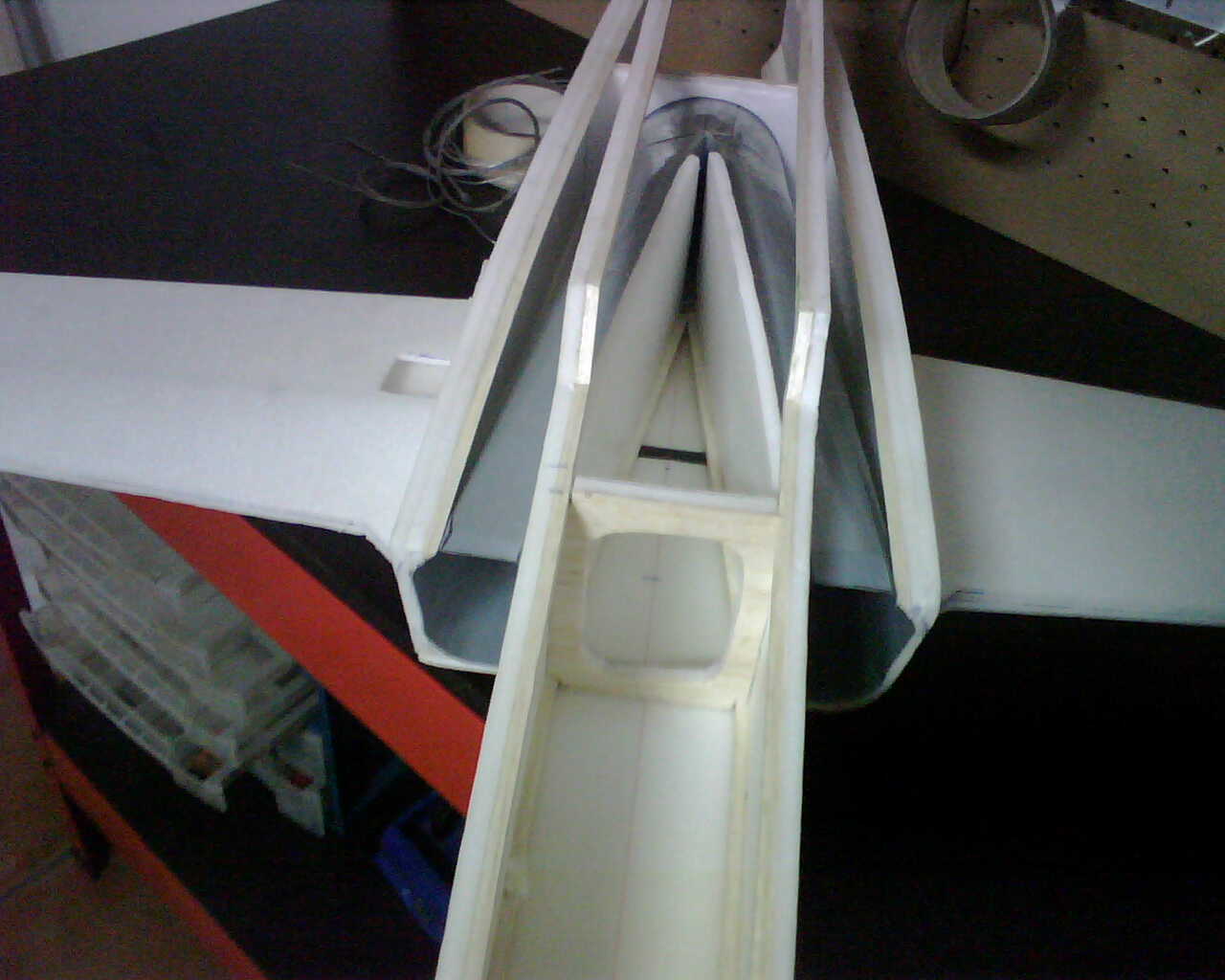-Como va colocada la electrónica, as hecho un registro en las alas para colocar los servos de alerones, donde va metido el servo de profundidad y el de dirección si lo lleva.