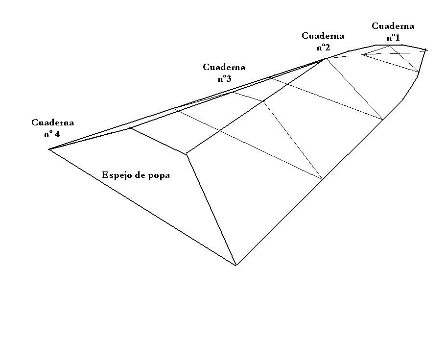 - El espejo de popa es la cara exterior de la cuaderna que forma la popa de la lancha (la parte trasera). En tu lancha hay cuatro cuadernas, donde la nº1 es la pequeñita junto a la proa, y la nº4 forma, en su cara externa, el espejo de popa.