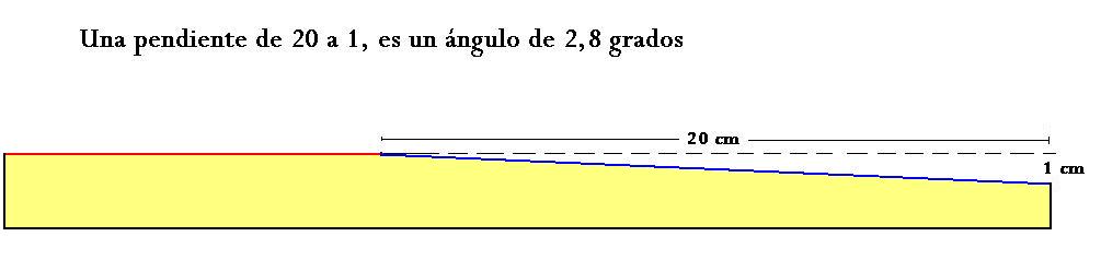 Supongamos que queremos hacer plantilla para pieza de 20cm y 4º de incidencia, cogemos la calculadora ampliada de windows (menú "Ver"--> "cientifica", opciones .Dec .Sexagesimal) y teclamos "4" "tan" "signo de multiplicación" "20" el valor que obtenemos nos da el cateto pequeño, es decir en nuestro caso hemos de dibujar un triángulo rectángulo donde el cateto largo mida 20cm y el cateto corto 1,4cm. Apoyamos el cateto largo sobre la panza del hidroplano y movemos la strut haste que la línea central del tramo final es paralelo a la hipotenusa.