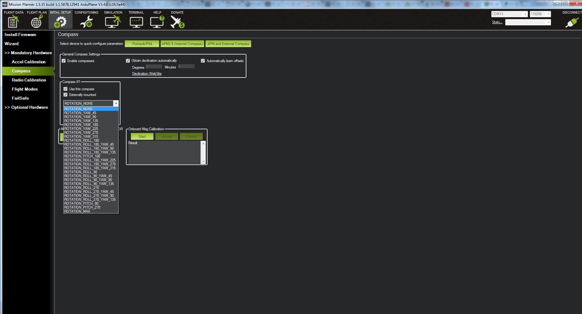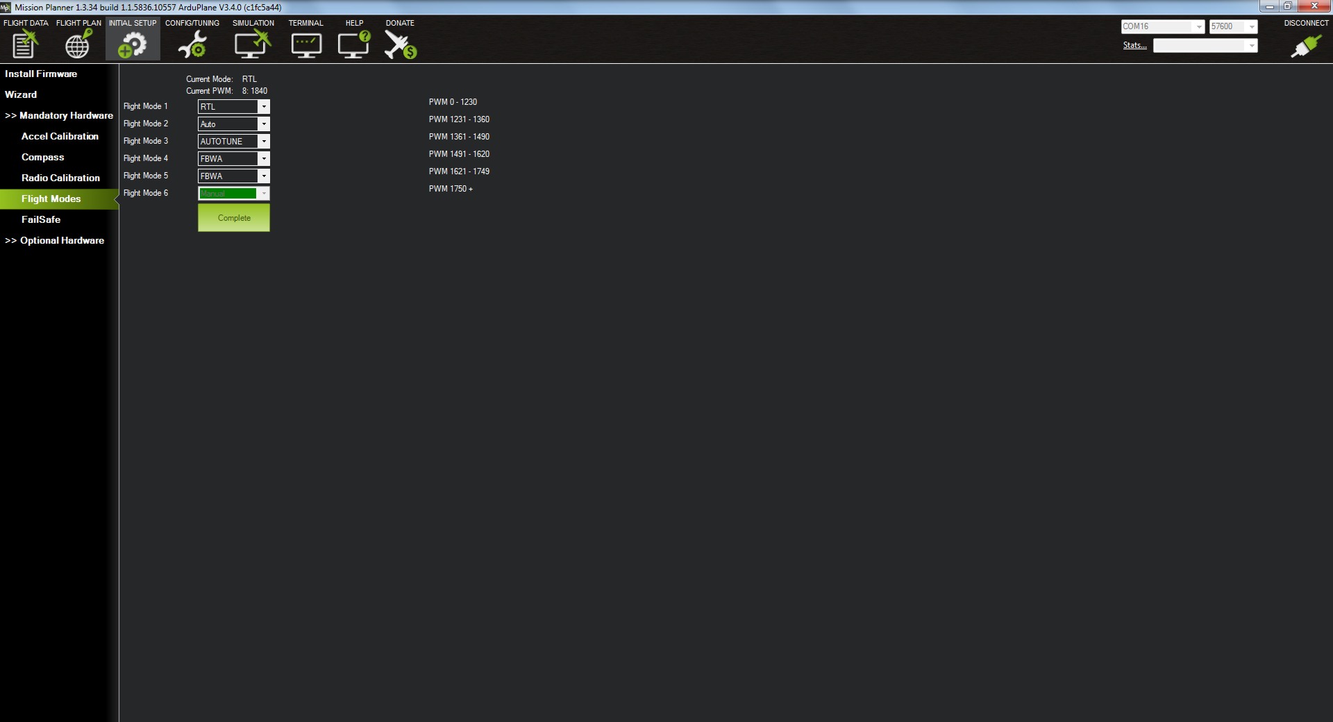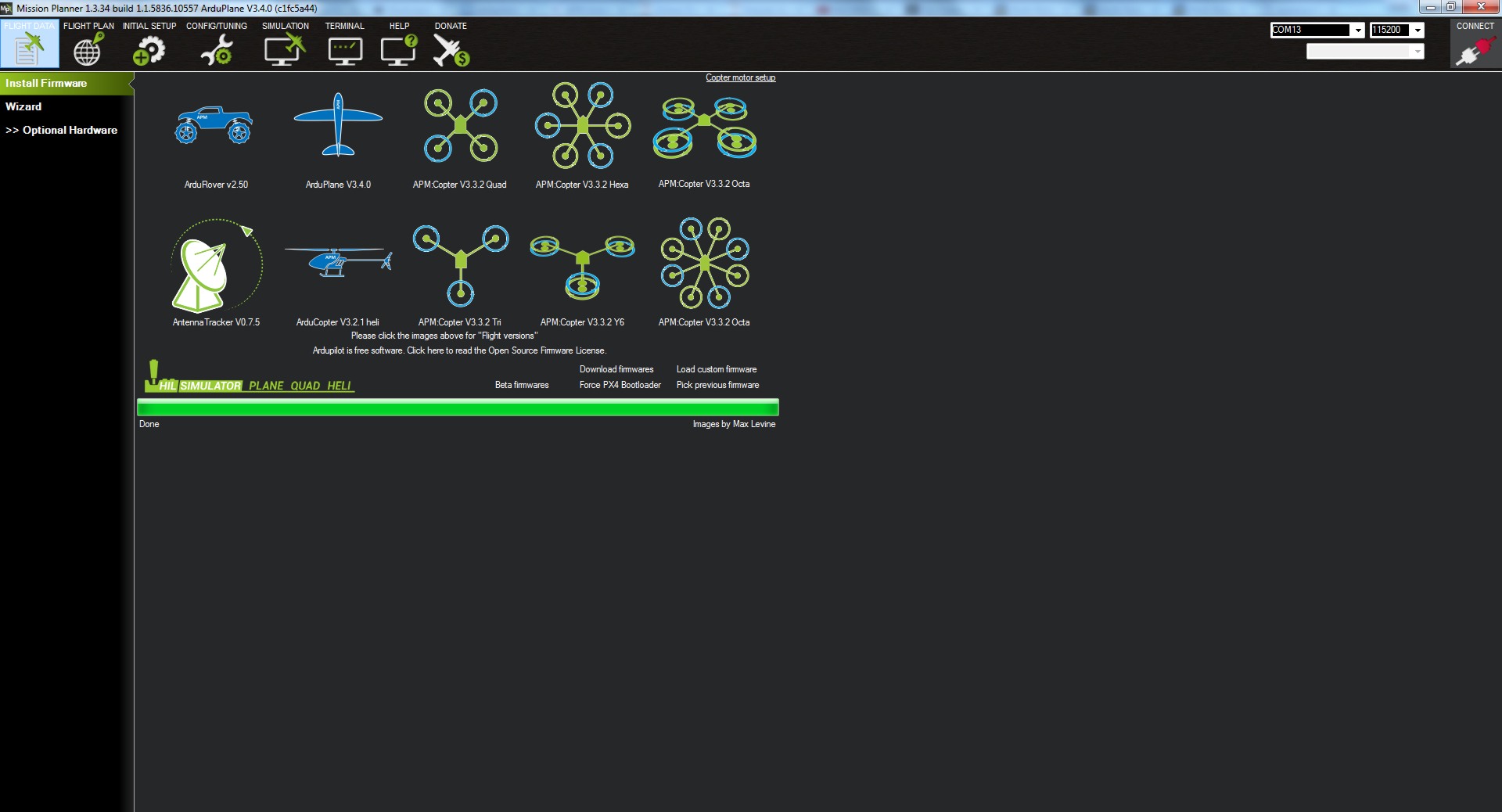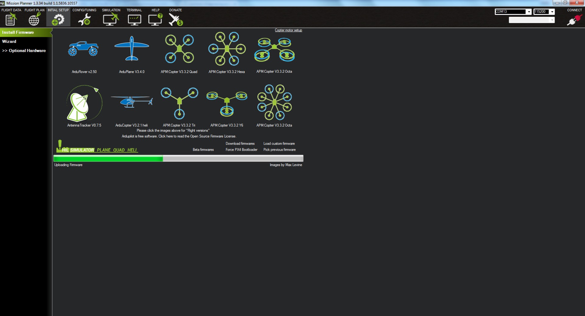 Una vez abierto el Missión Planner y conectada nuestra placa nos iremos al menú de INITIAL SETUP.