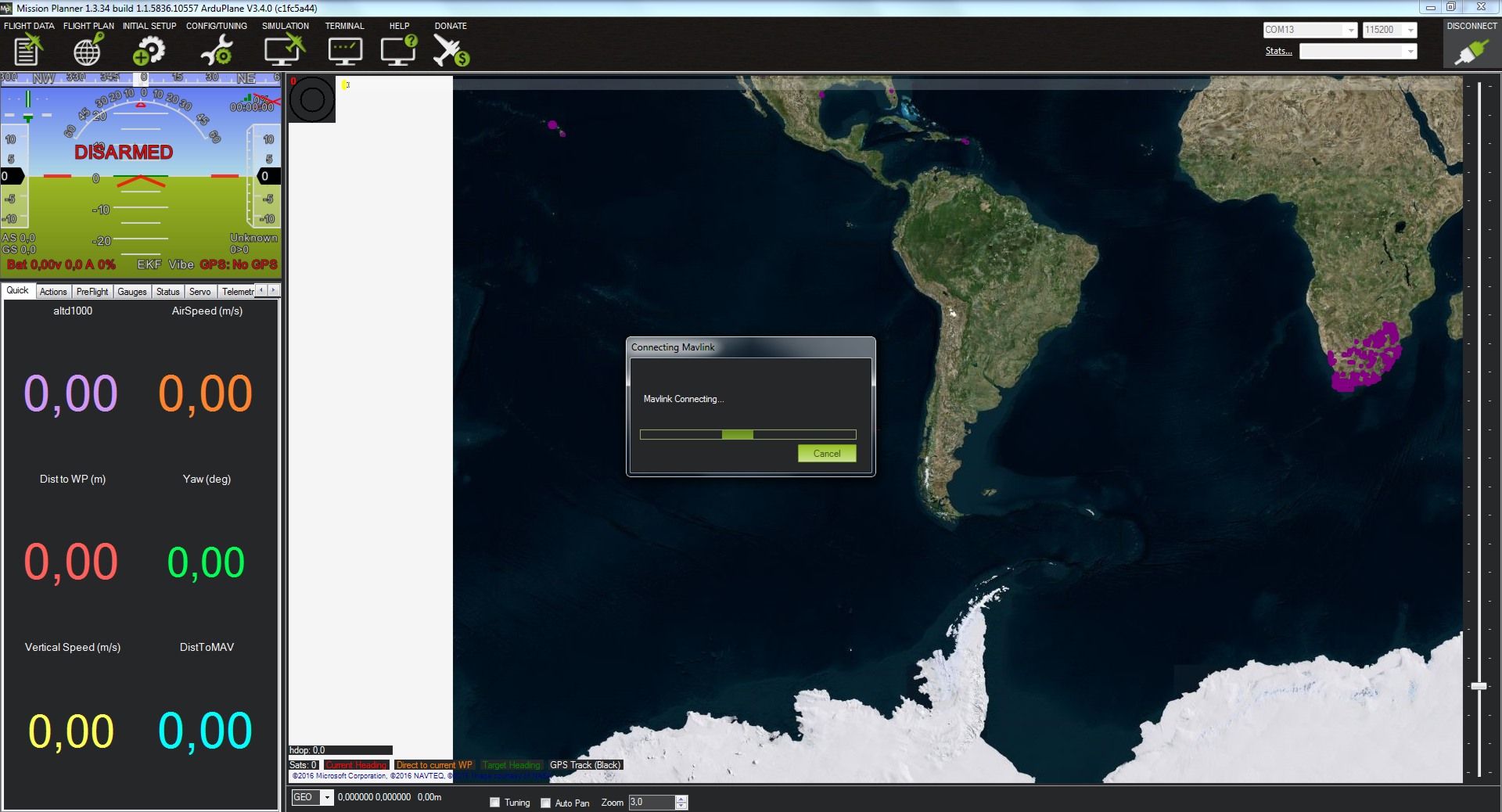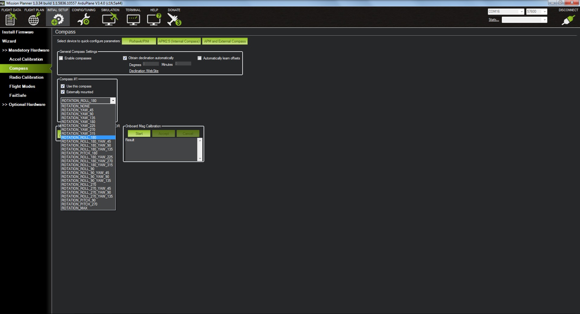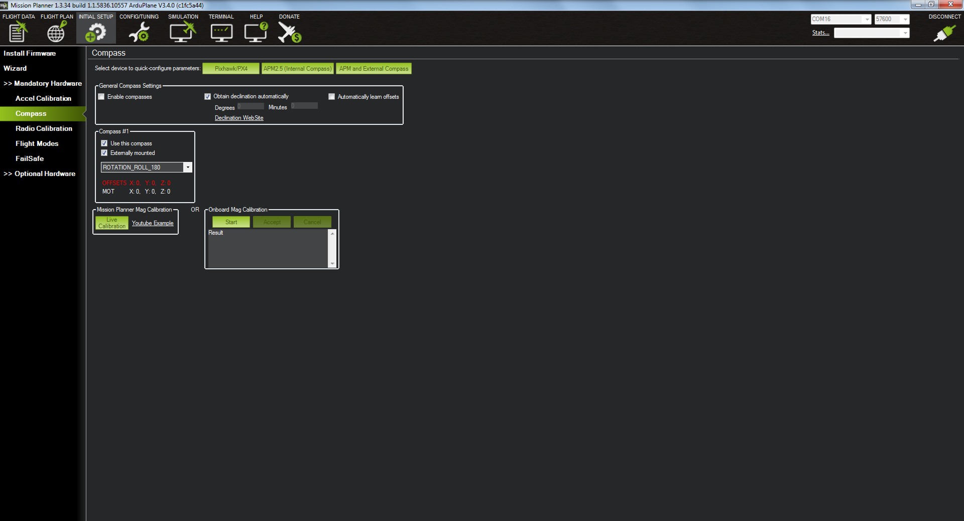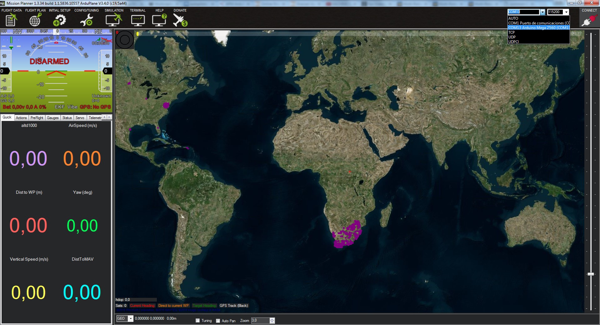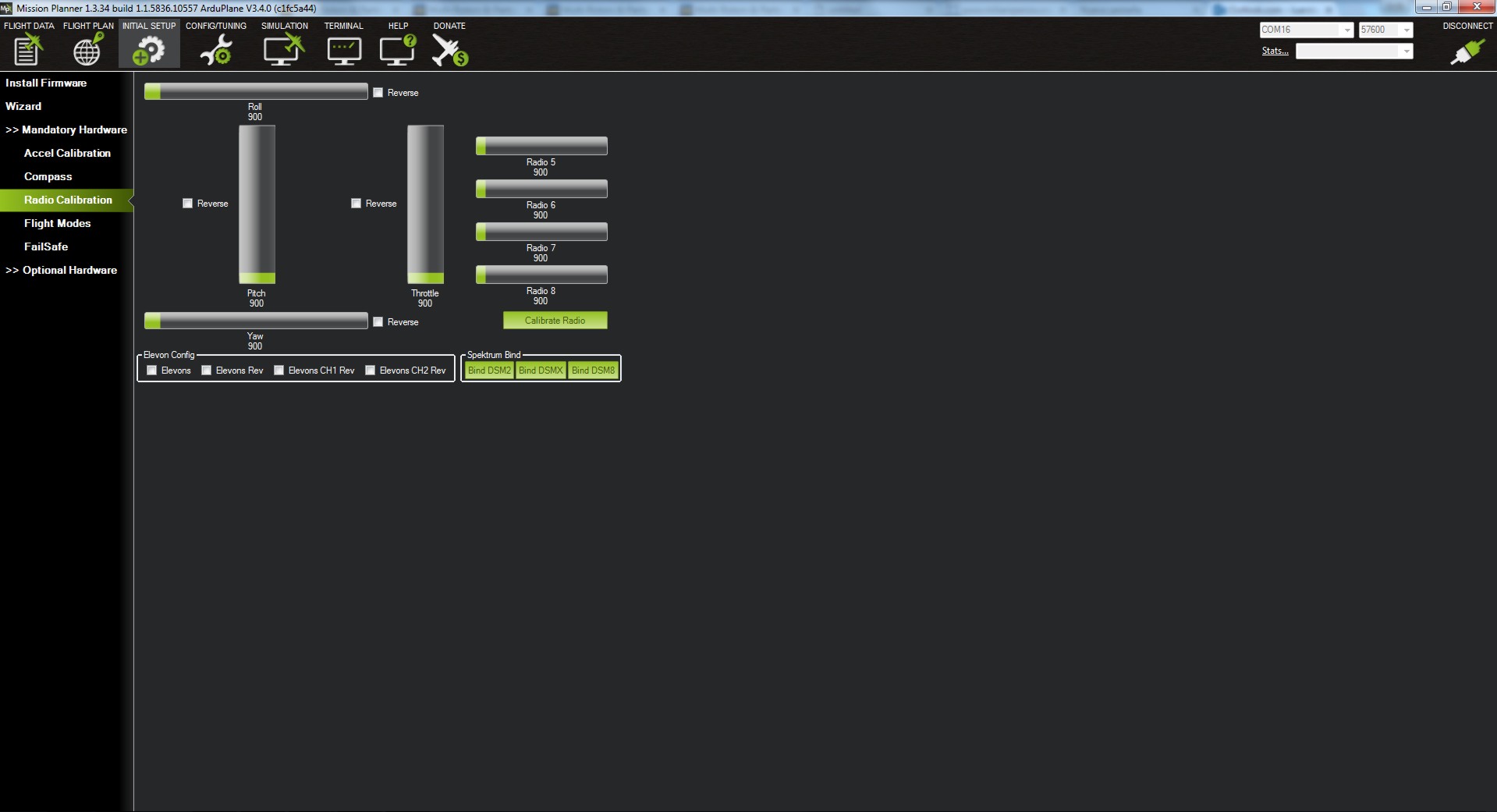 La podemos hacer mediante dos formas, con el cable USB que hemos utilizado para cargar el firmware, seleccionaremos el COM correspondiente y 115200 o bien, con el módulo de telemetría que en este caso será 57600.