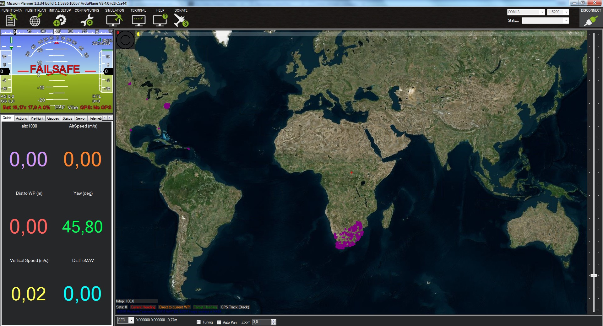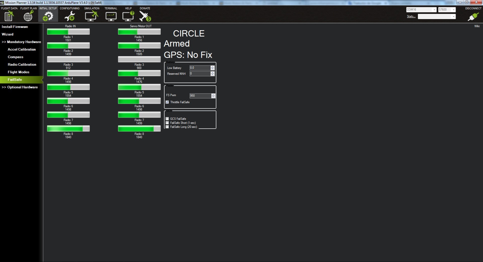 Sí perdemos la señal por más de 1,5 segundos entrará el sailsafe y mediante el parámetro FS_SHORT_ACTN elegiremos que hace el avión, en nuestro caso con FS_SHORT_ACTN a 0, sí el avión va en “MANUAL” o “vuelo estabilizado FBWA” pasará a “CIRCLE” y sí vamos en “AUTO” seguirá en “AUTO”.