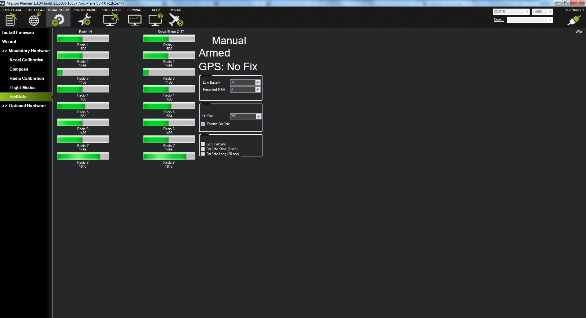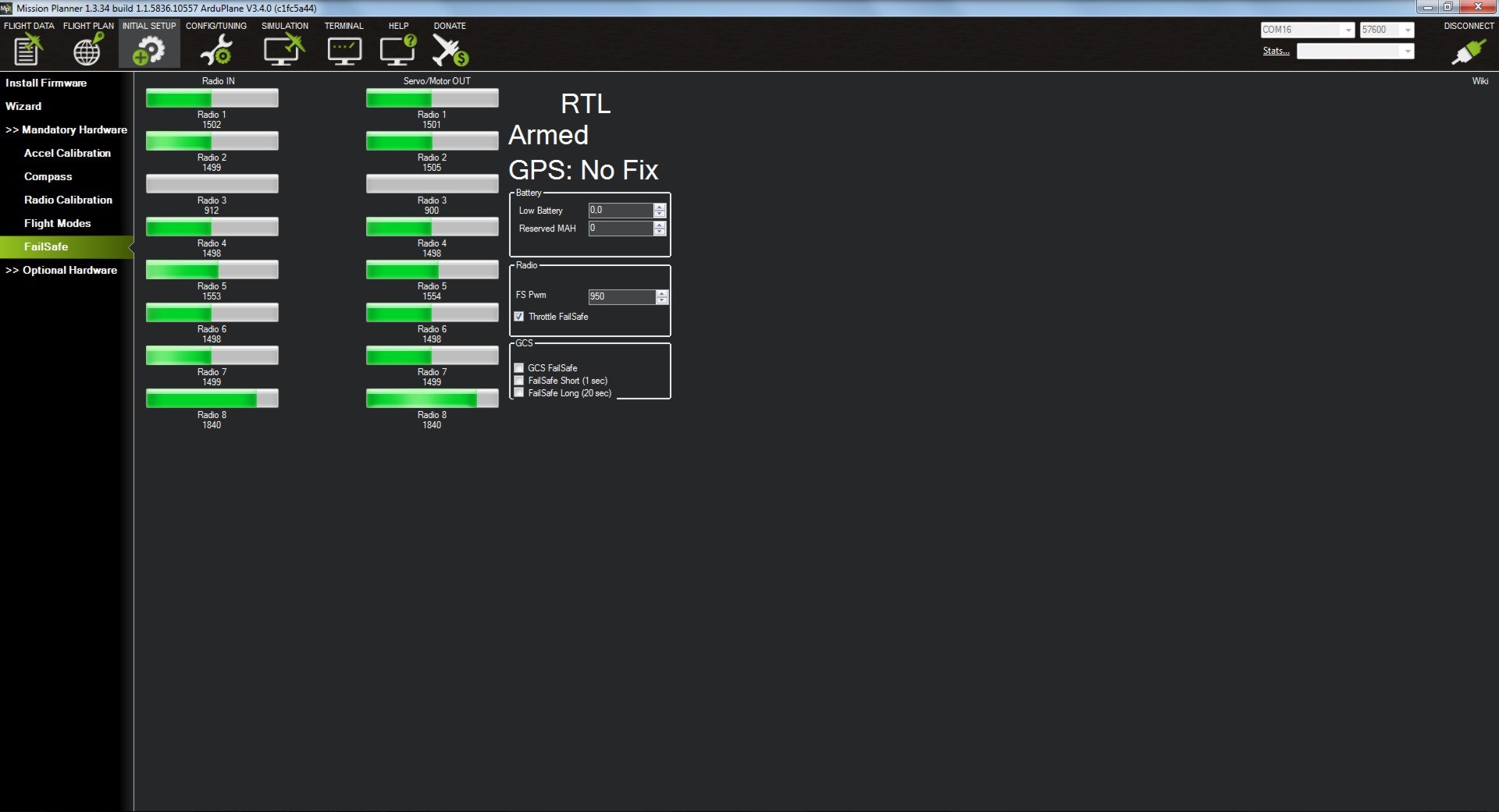 El Failsafe que vamos a activar es solo por perdida de señal de radio, es decir cuando el valor de PWM del motor es inferior a 950 (puede ser entre 920-1100).