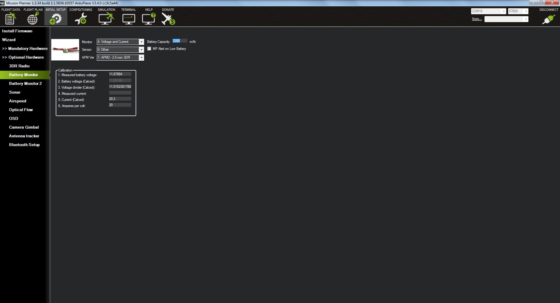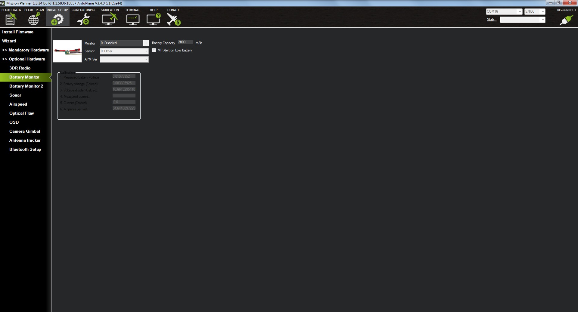 Y para terminar por hoy, vamos a configurar el monitor de batería, esto lo hacemos a través del menú OPTIONAL HARDWARE y el botón BATTERY MONITOR.