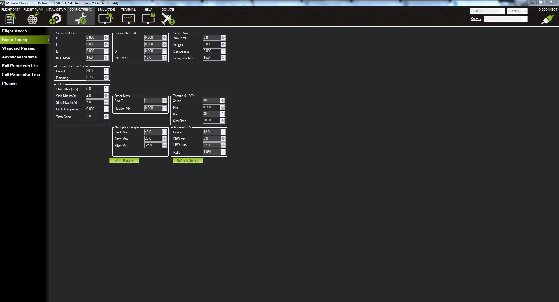 Bueno pues solo nos queda programar los parámetros de vuelo para la prueba de vuelo.