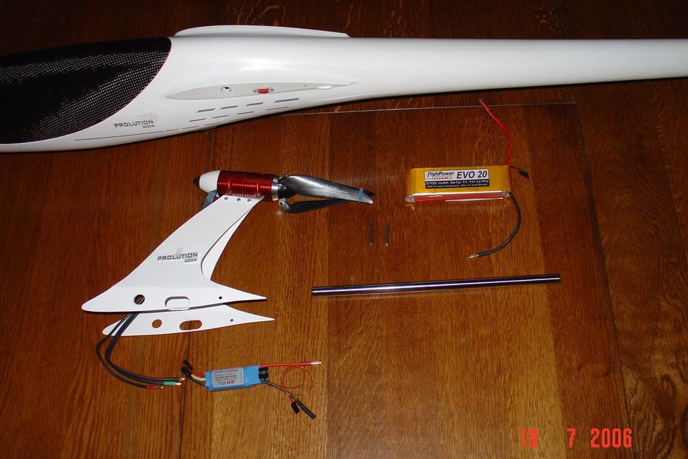 La versión utilizada es la lista para volar que trae las alas termocubiertas, alerones y flaps cortados y abisagrados, aerofrenos cajeados y suministrados con el conjunto.