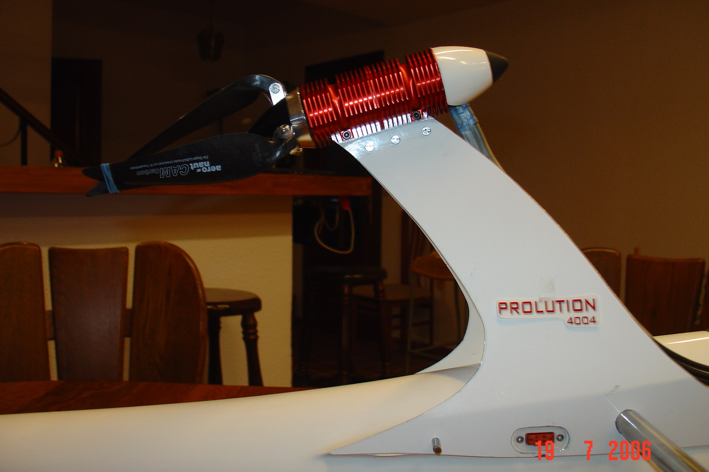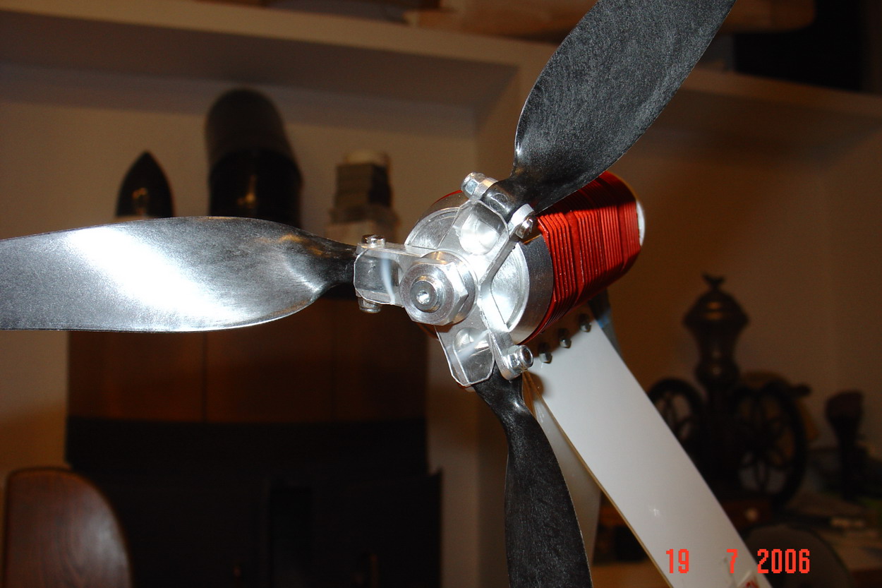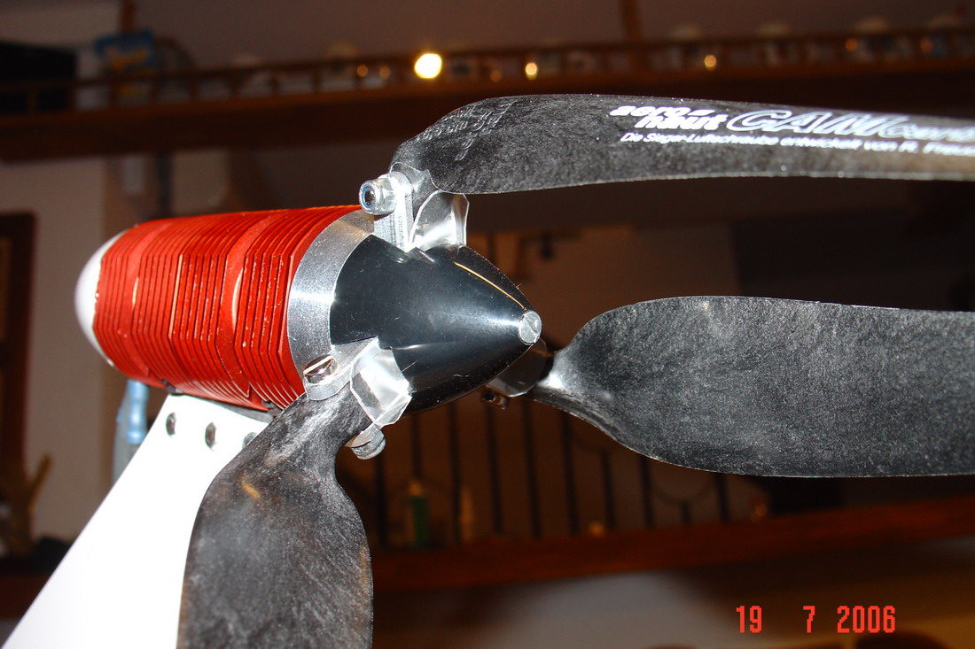 La razon de que el motor vaya en invertido es la facilidad de plegado de la helice, que es tripala para ahorrar una pulgada en en diametro.