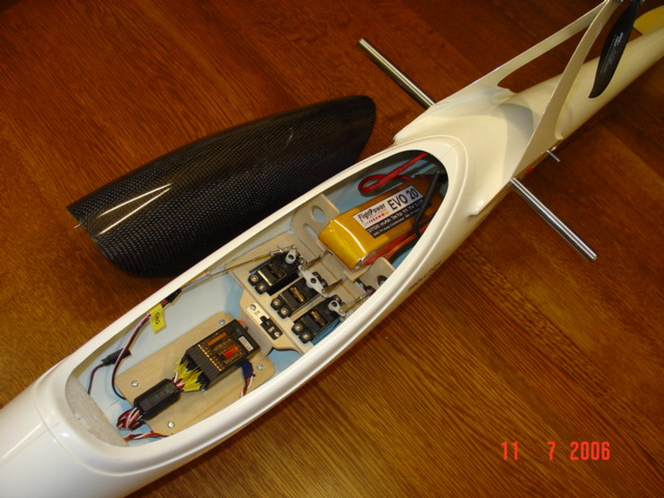 La versión utilizada es la lista para volar que trae las alas termocubiertas, alerones y flaps cortados y abisagrados, aerofrenos cajeados y suministrados con el conjunto.