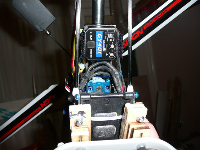 Estoy intentando fuselar un Trex450XL,y la posición inicial(arriba) del giróscopo no me sirve ya que no tengo espacio,y lo he colocado abajo.