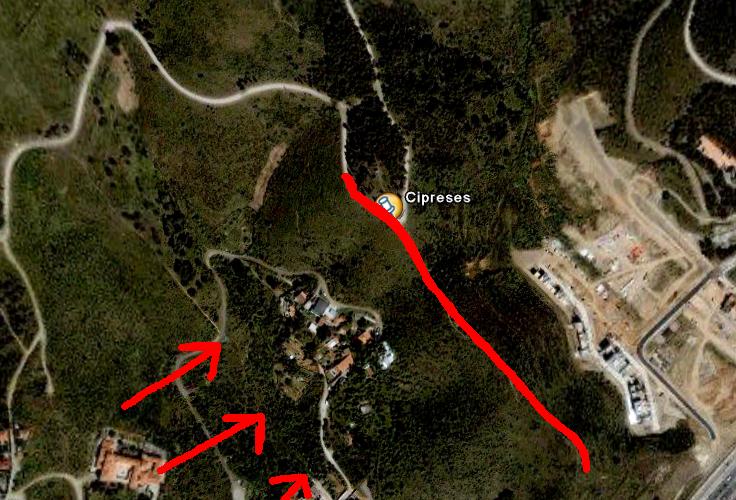 He marcado 3 puntos, el verde es la zona mas baja, azul un poco mas alto y naranja es el lugar mas alto. Estos puntos son los que debido a los arbustos y el tipo de suelo, van mas bien para ponerse y hacer volar el aeromodelo.