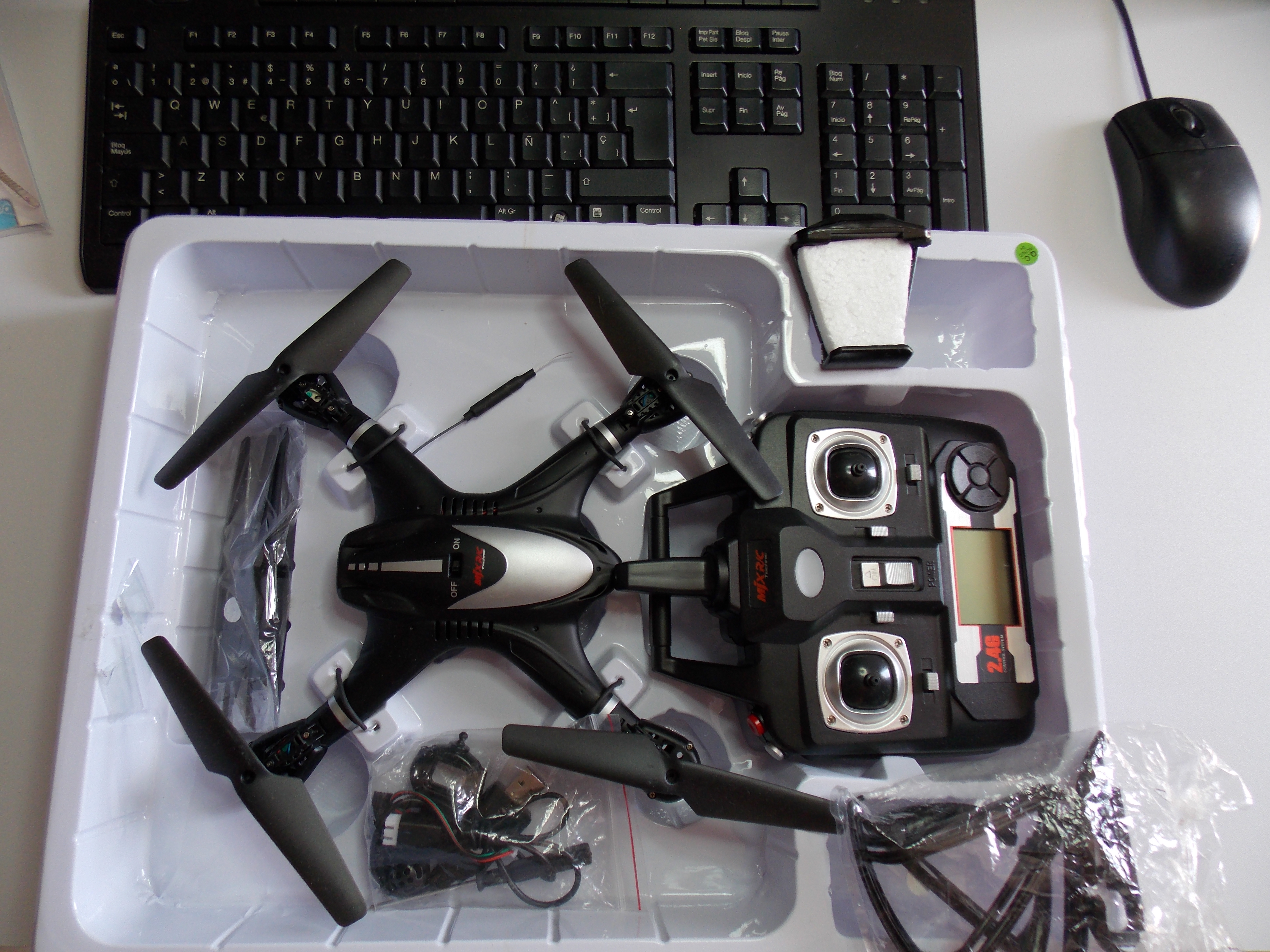 Salvo un smartphone para sacarle el máximo partido en FPV, realmente no necesitamos nada más. Si no usamos el modo FPV o vuelo automático “CONTROL” mediante el móvil, en la caja está todo lo necesario para hacerlo volar y sin ningún conocimiento de drones.