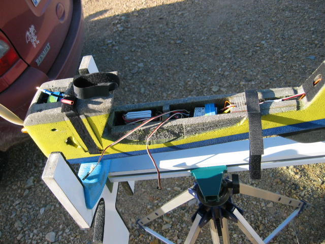 El aparato en cuestión es un fun fly de 134 de envergadura, de construccion casera, y con la particularidad de que el fuselaje está construido de EPP, procedente de una caja de embalaje que encontré por ahí.