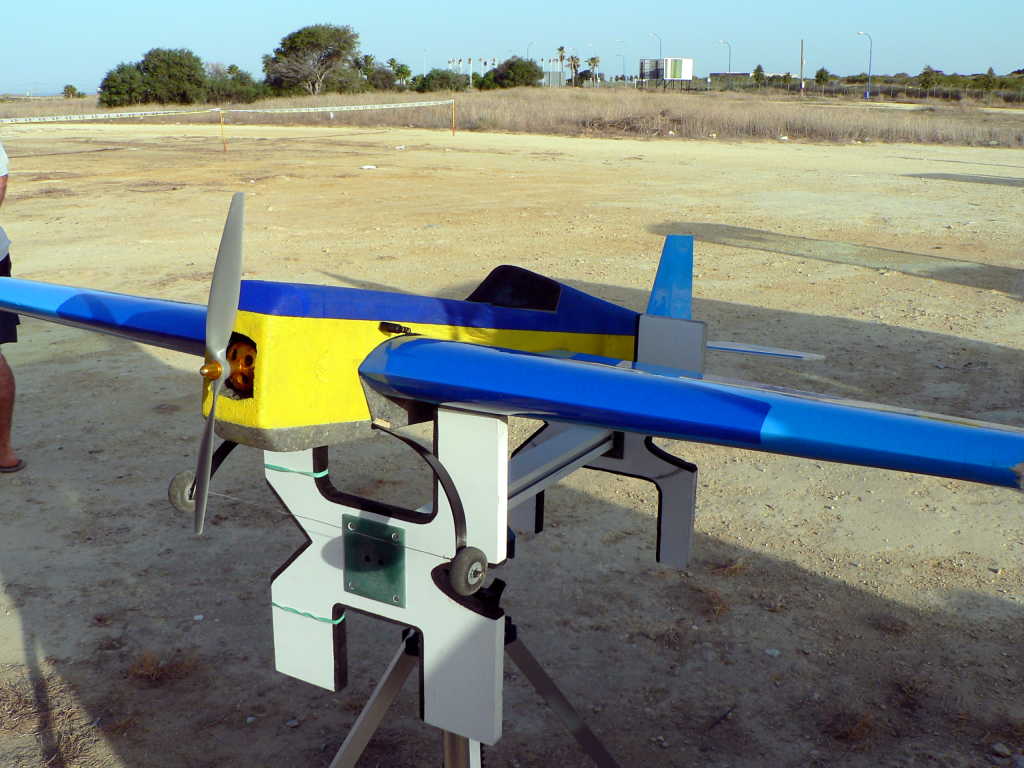 La motorizacíon es electrica con un motor brushless 3520 de Tower pro, un regulador de 45 Amp y unas Lipos de 5 elementos de 2200 mah de 20c proporcionan de 8 a 10 minutos de vuelo.