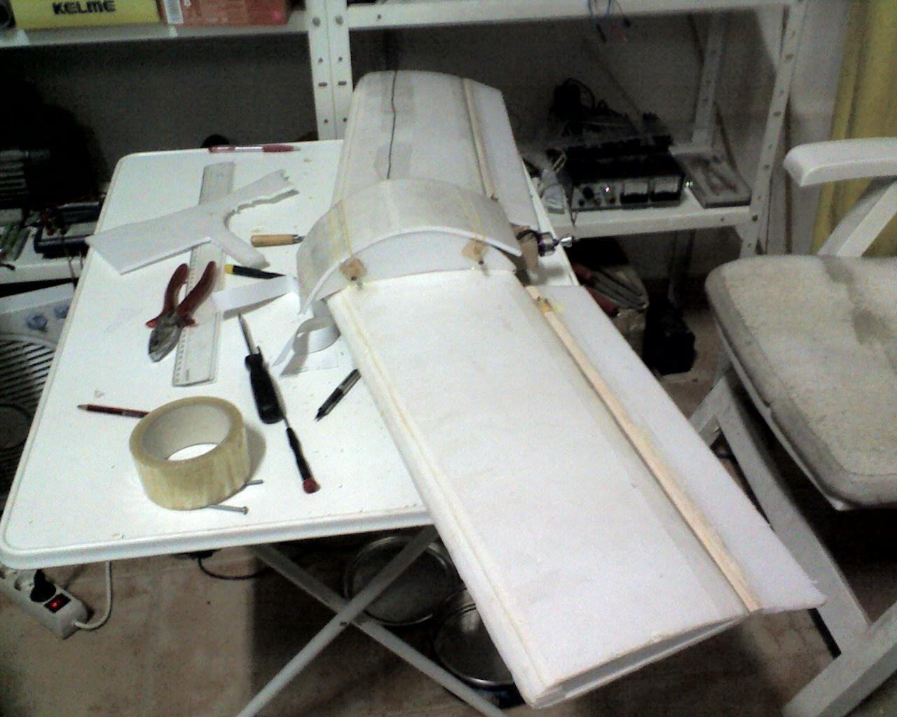 hola buenas tardes, aprovechando el ala de un biplano casero la hice un ala volante, el equipo que lleva es:
