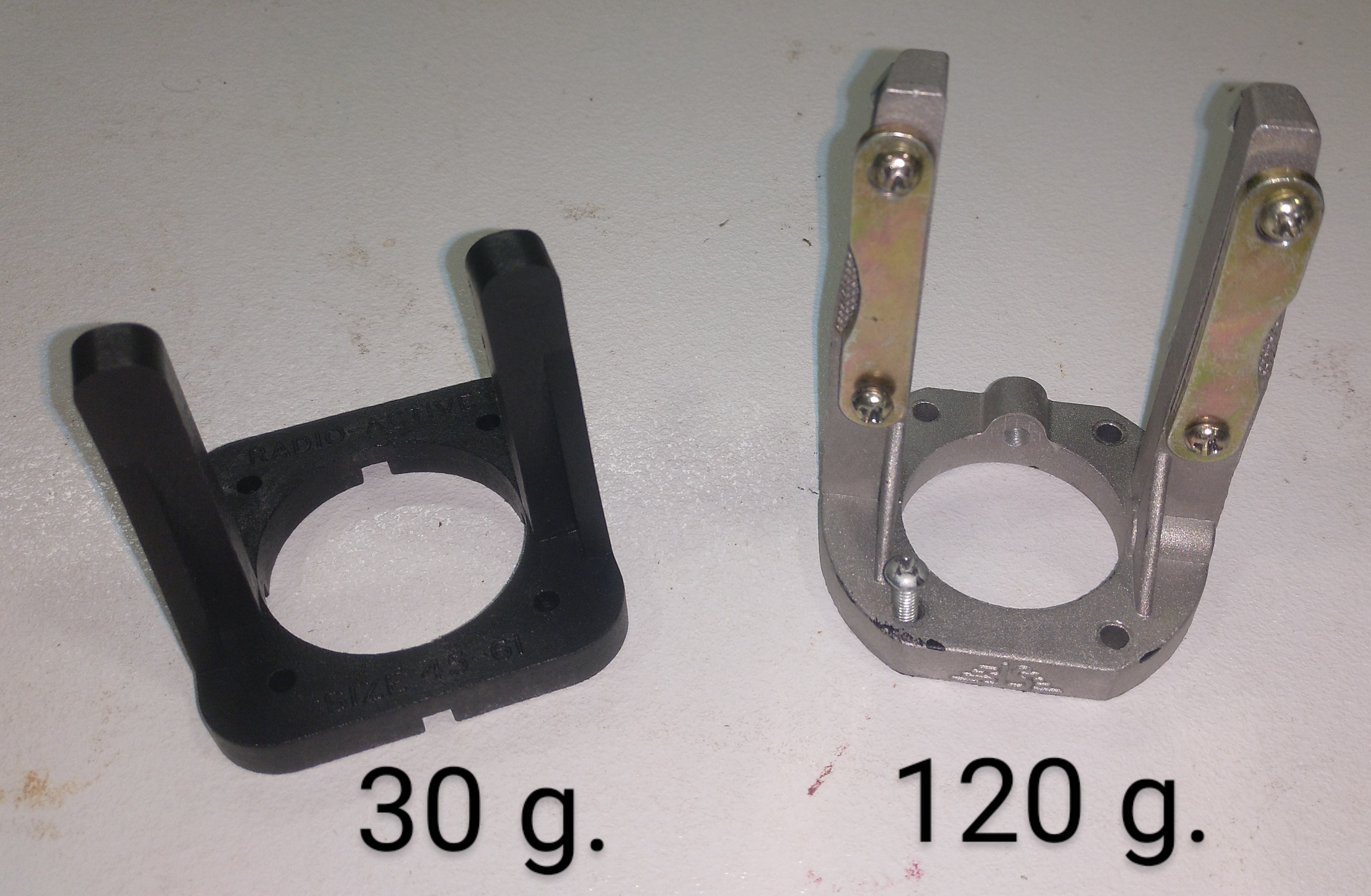 Me dispongo a cambiar la bancada. Como veis en la fotografía hay mucha diferencia de peso de una a la otra y además el motor lo acerco un centímetro más al centro de gravedad, que por muy poco es algo.
