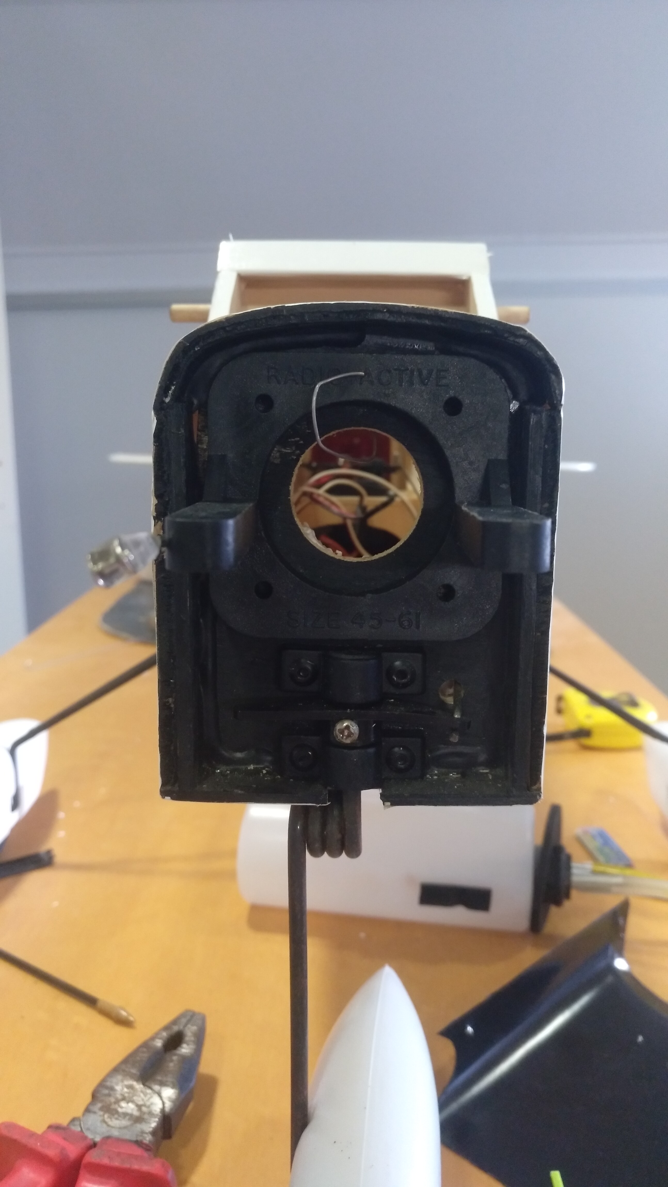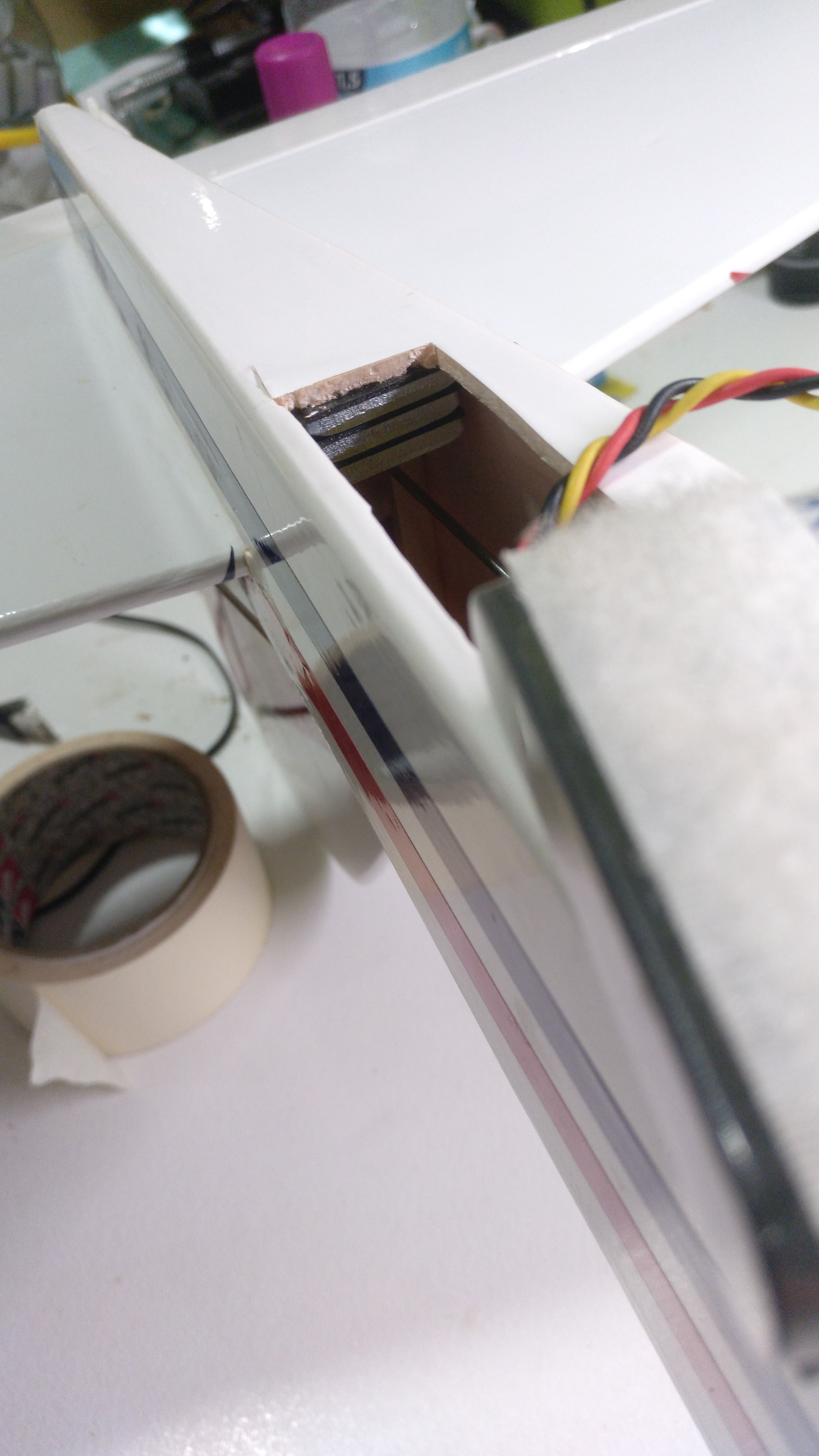 He perforado el fuselaje lo más cercano a la cola dónde colocar las baterías y 30g de peso extra.