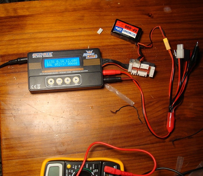 La batería es 2200mA, 3S y 30C. El alimentador del balanceador me da 15,2V (le he puesto uno de un portatil).