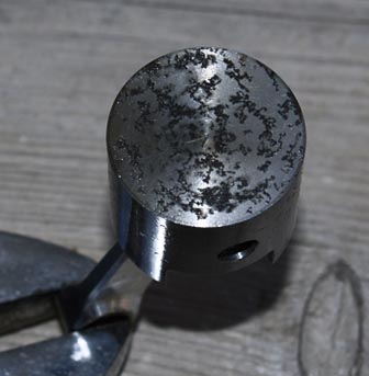 Cabeza de pistón de Webra 50GT. Las manchas son más bien surcos.