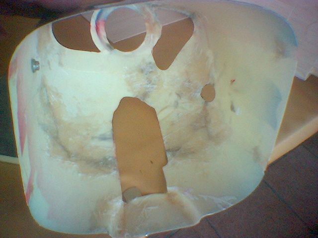 Chapado del frontal, antes reforcé la parallamas con fibra ya que de todas formas habia que añadir plomo para centrar el CG